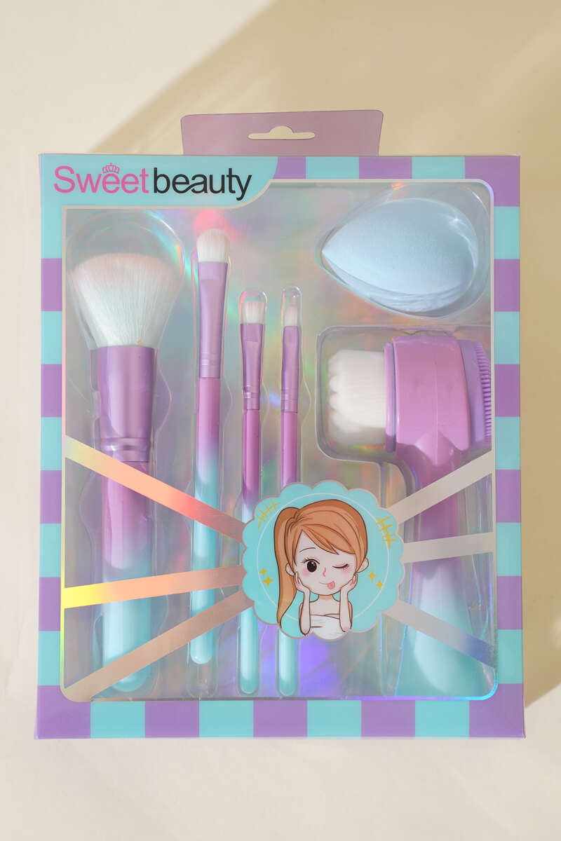6'lı Makyaj Fırçalı + Yüz Temizleme Fırçalı Set Mavi