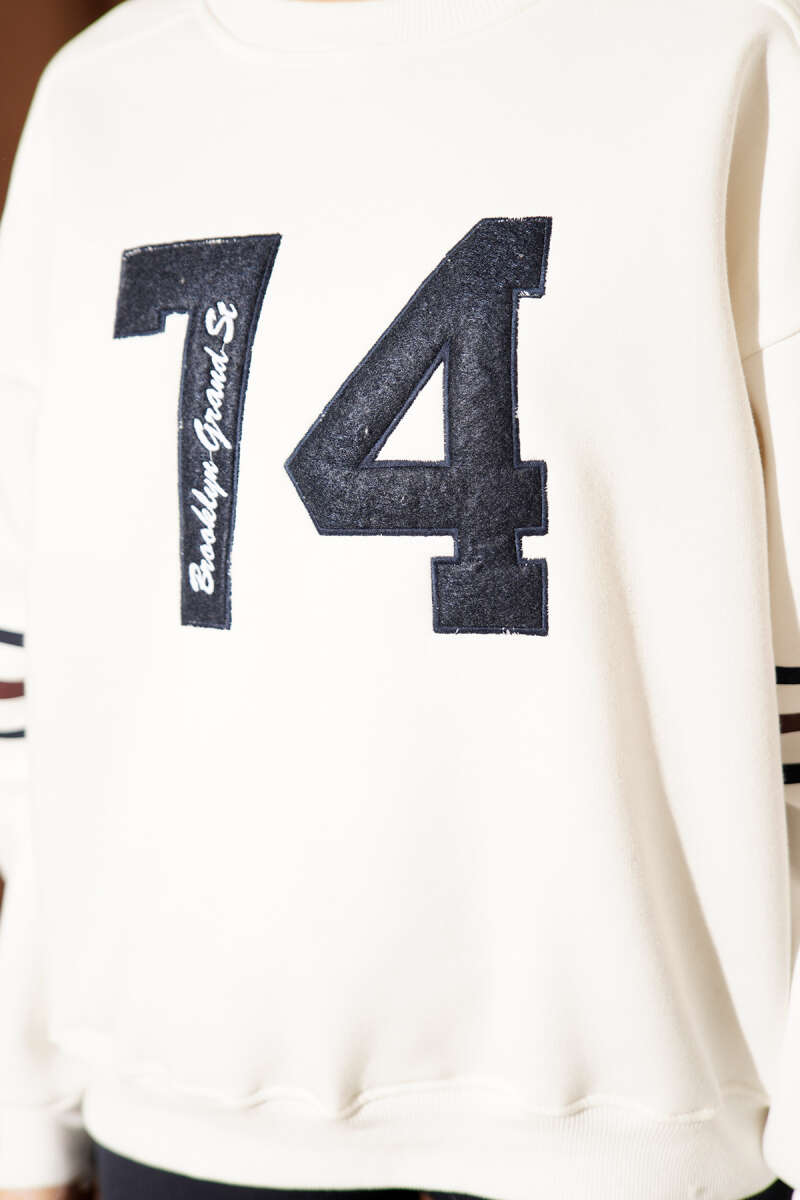 Üç İplik Dik Yaka Sweatshirt Ekru