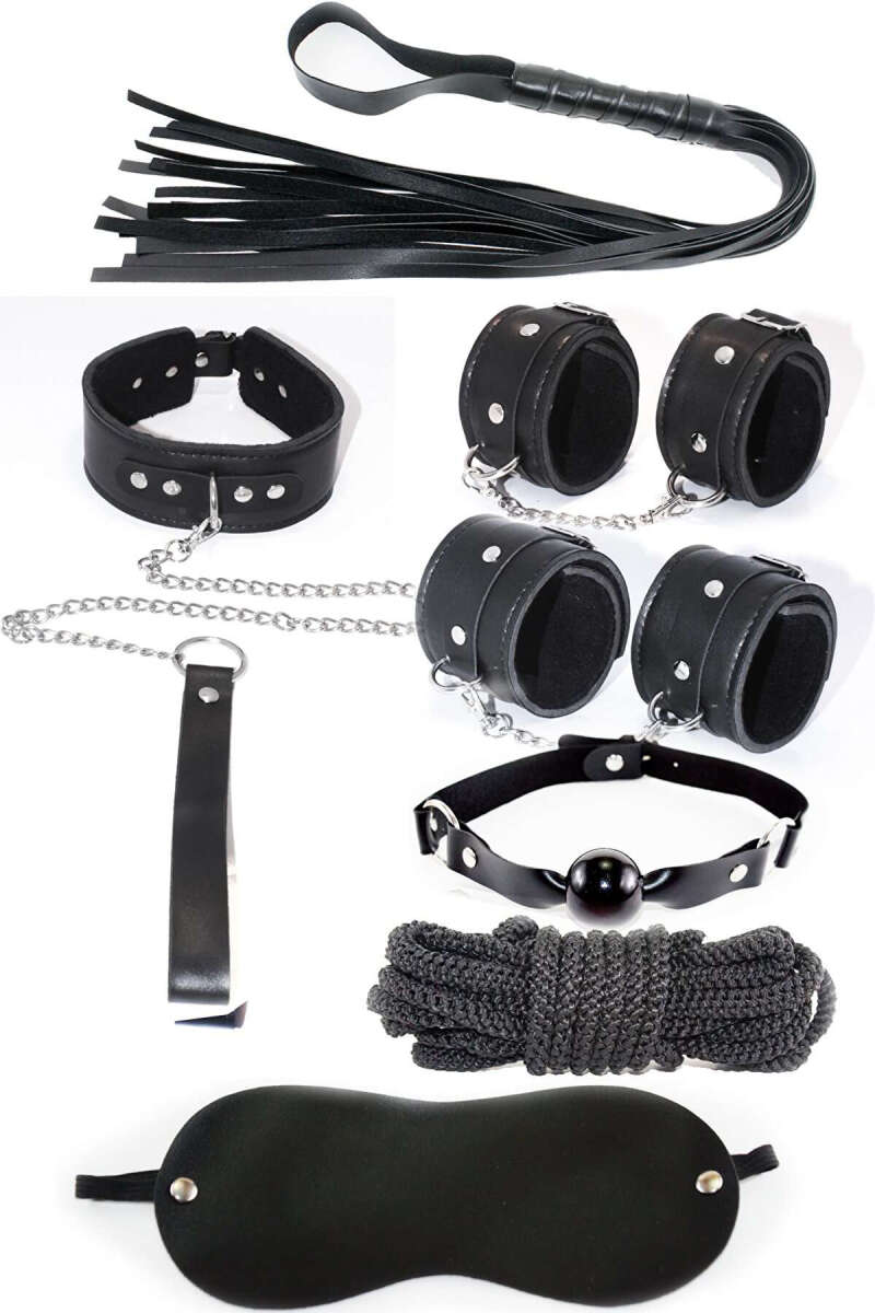 7'li Fantezi Kelepçe Kırbaç Seti Siyah