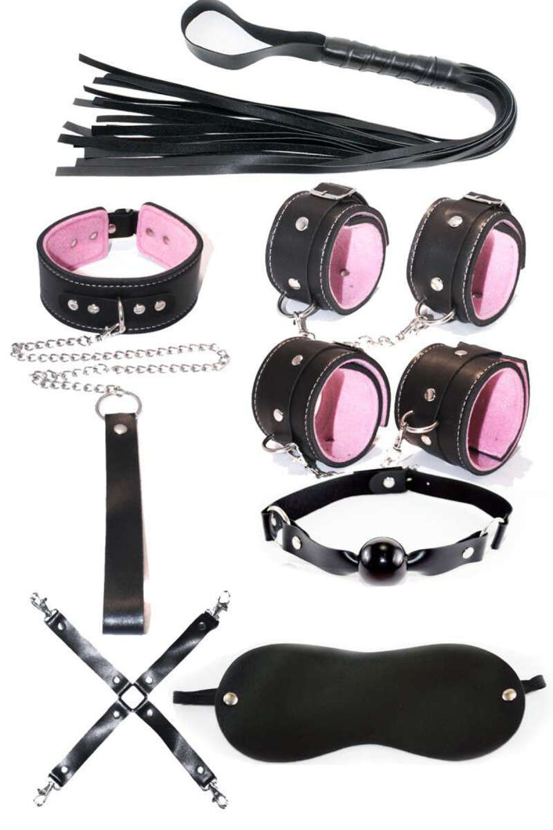 7'li Fantezi Kelepçe Kırbaç Seti Siyah Pembe