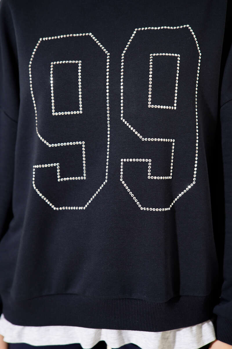 99 Taş Yazılı Sweatshirt Lacivert