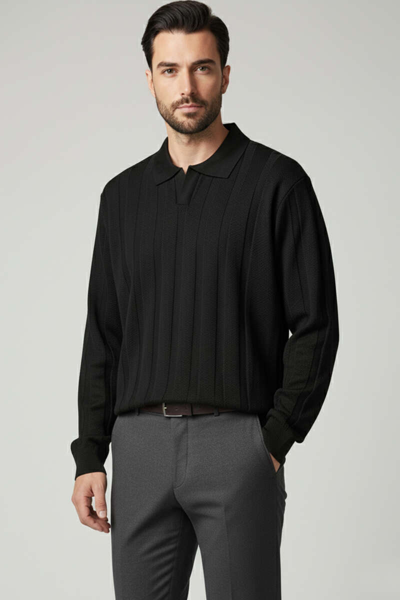 Açık Polo Yaka Erkek Örme Kazak Lacivert