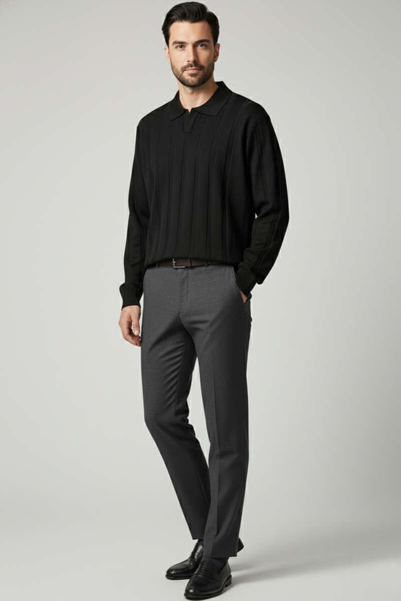 Yarım Fermuar Boğazlı Kazak Siyah