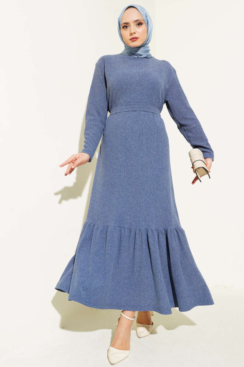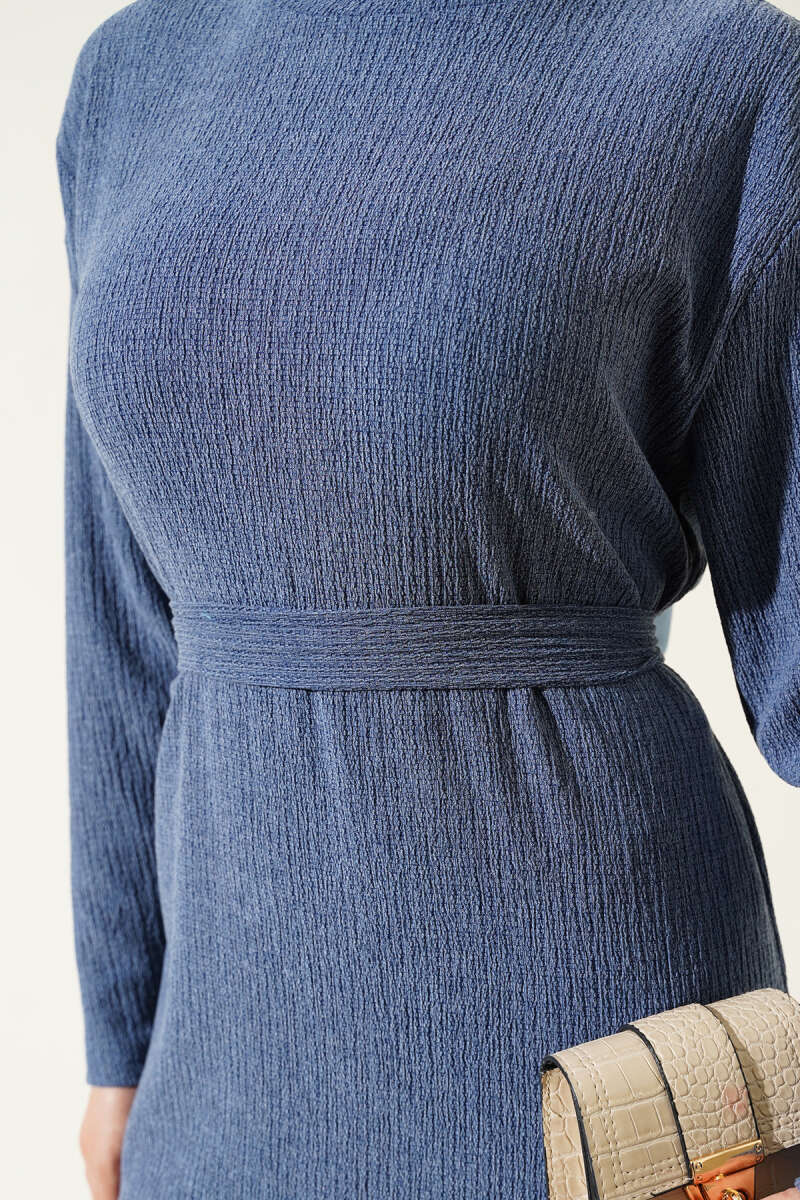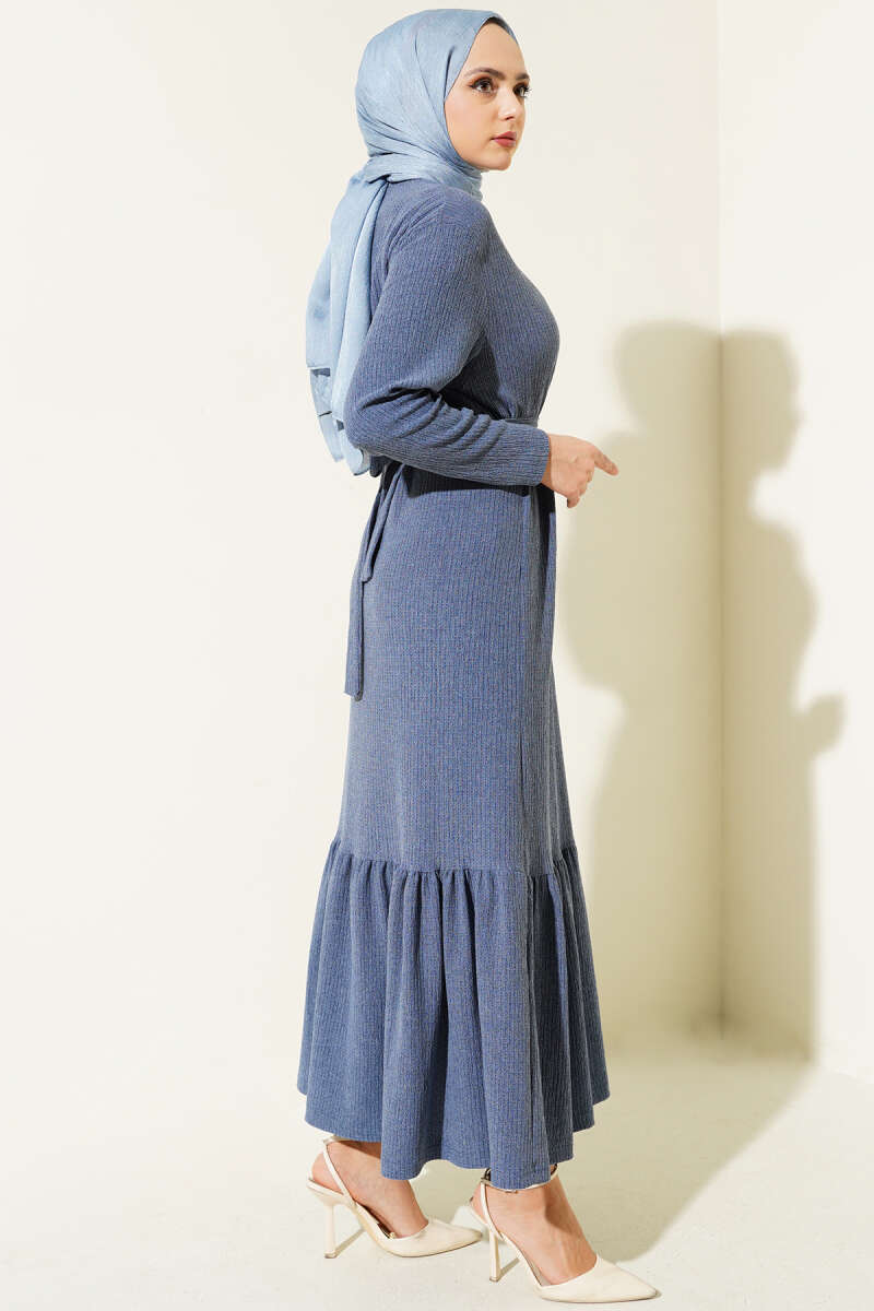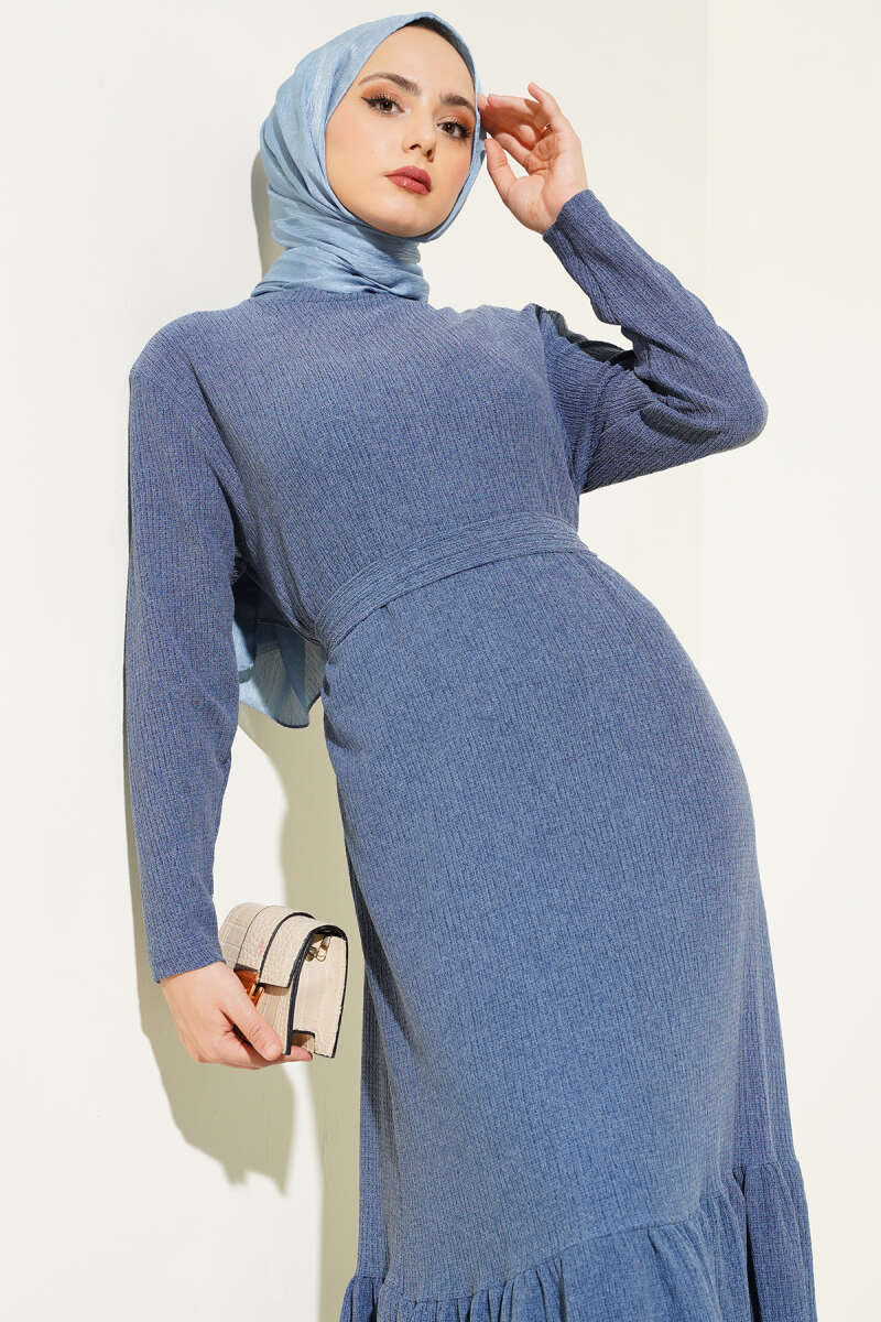 Bel Lastikli Desenli Bürümcük Elbise Lacivert
