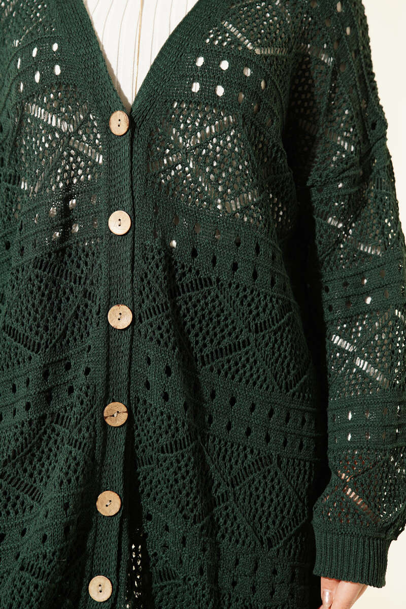 Damla Kabartmalı Triko Hırka Yeşil