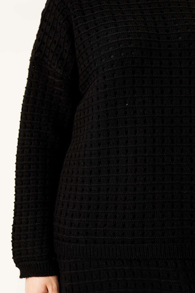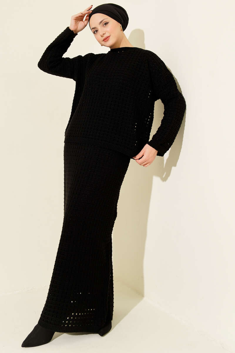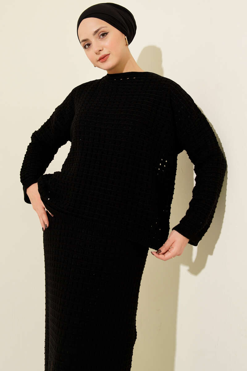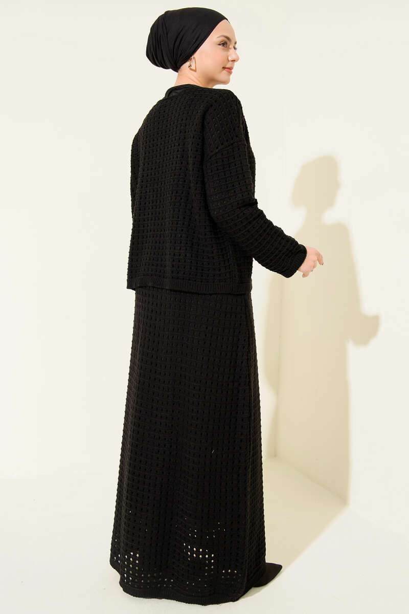 Taşlı Baklava Desen Triko İkili Takım Siyah