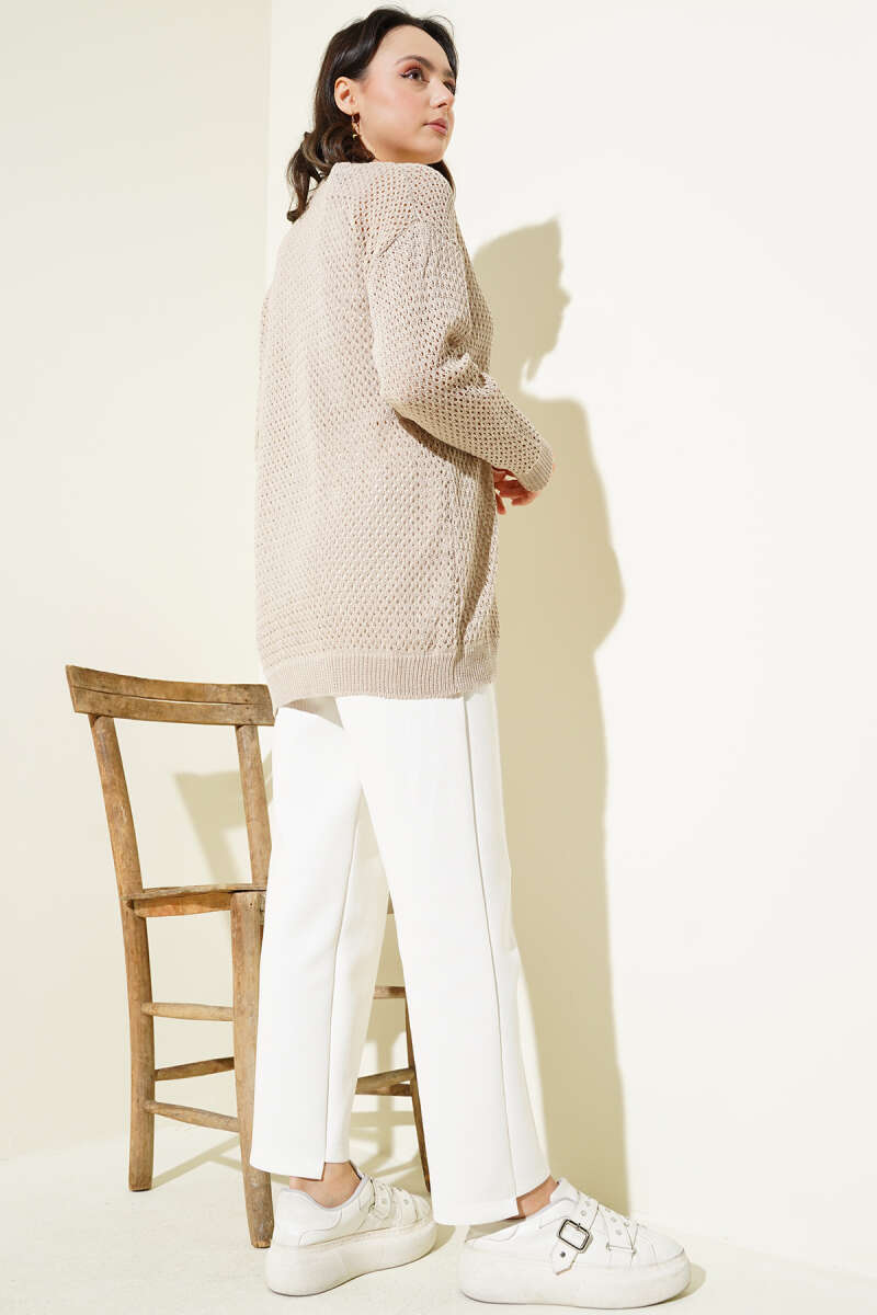 kalıbını çok beğendim. oversize duruşlu ama fazla geniş değil. yani tesettürlüler de etek üstüne rahat giyer. pant eğer dar kalıp değilsede giyilir ama dar kalıp da biraz kalça basen belli oluyor