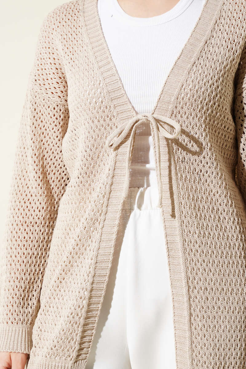 V Yaka Fitilli Çizgili Triko Tunik Kahve