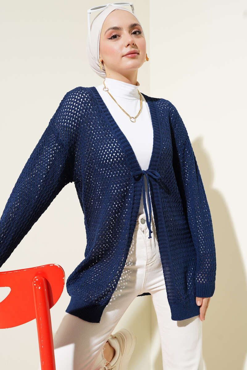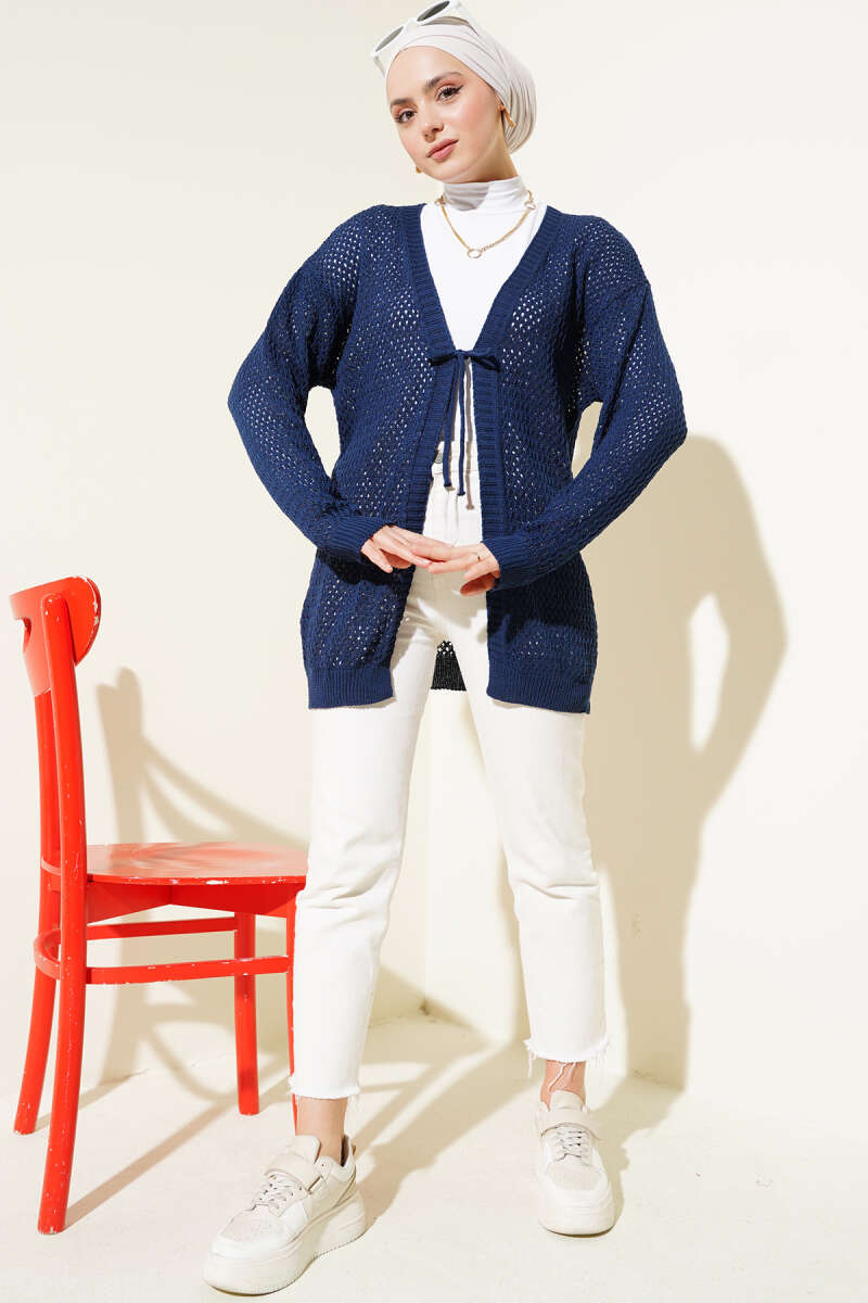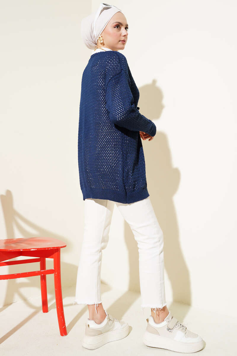 Düğme Detaylı Basic Triko Hırka Lacivert