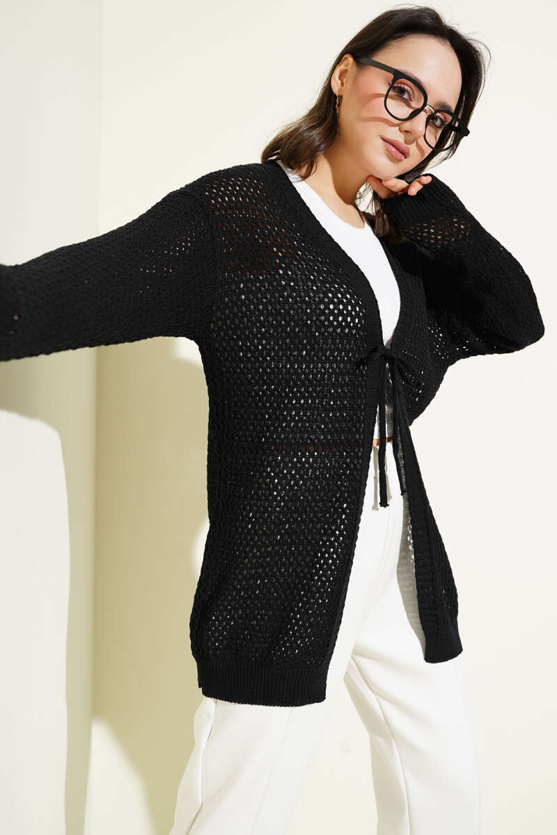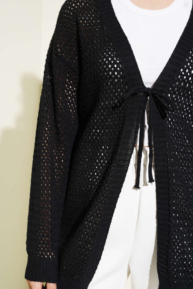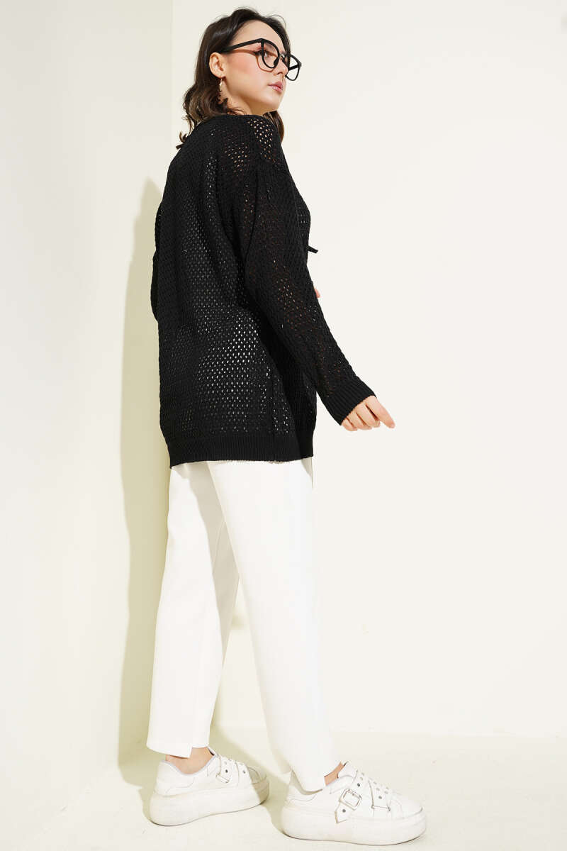 Çiçek Motifli Düğmeli Triko Hırka Siyah