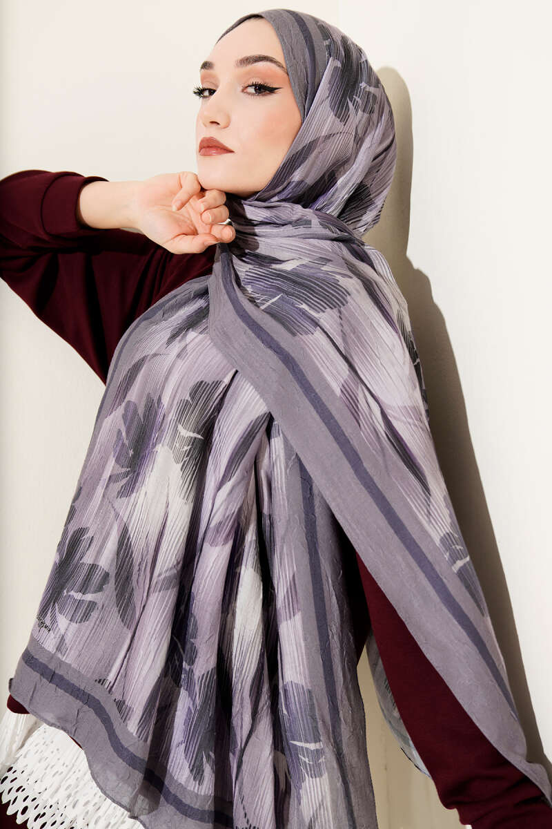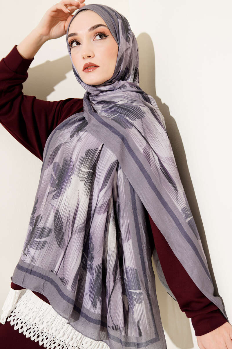 Botanik Desen Demore Şal Mürdüm