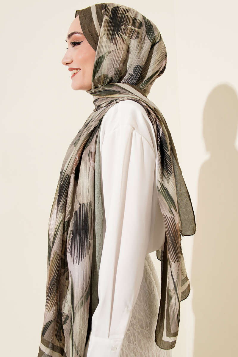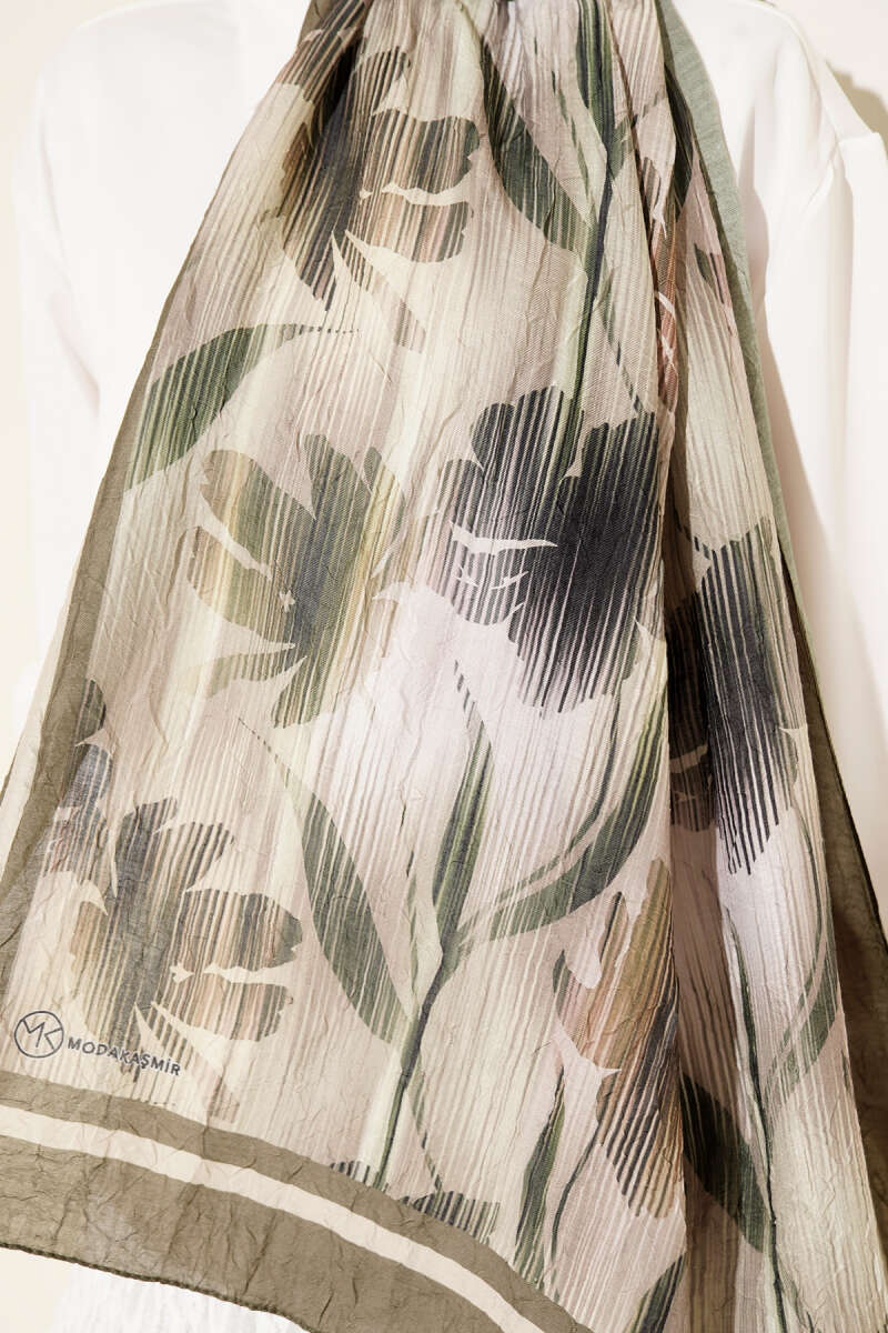 Akvarel Desen Bambu Kraş Şal Haki