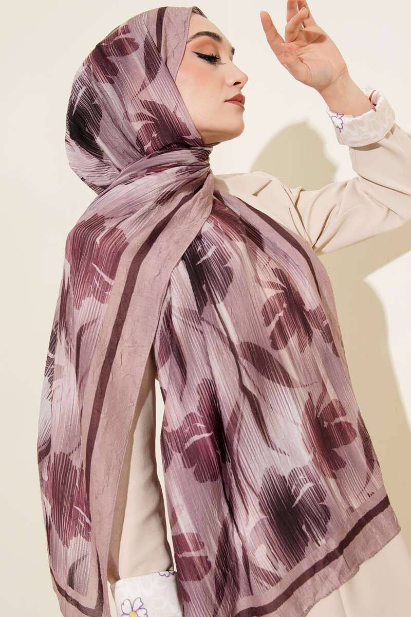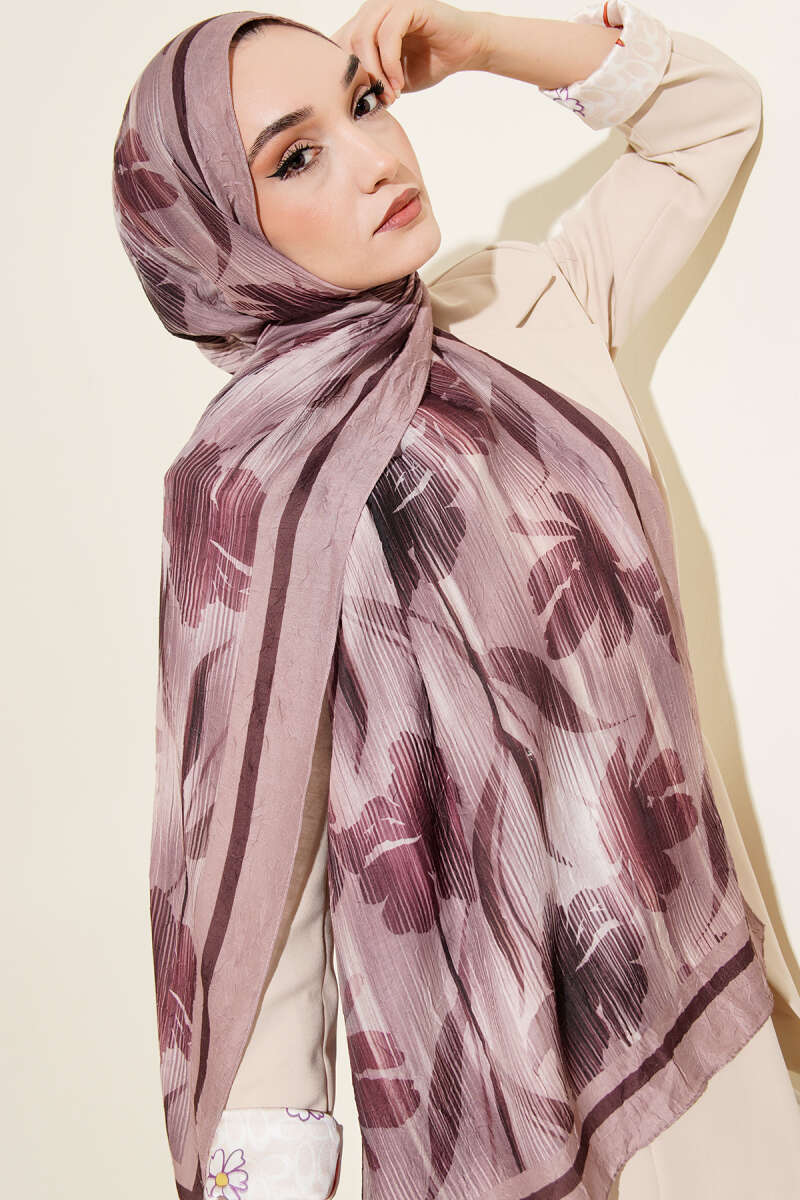 Botanik Desen Demore Şal Mürdüm