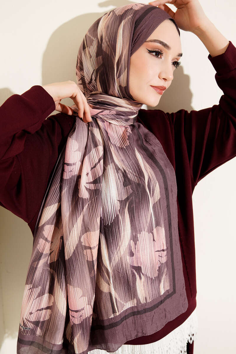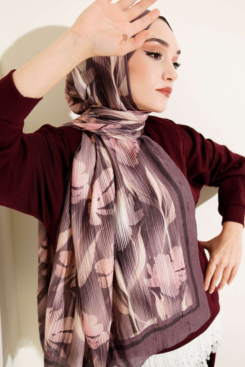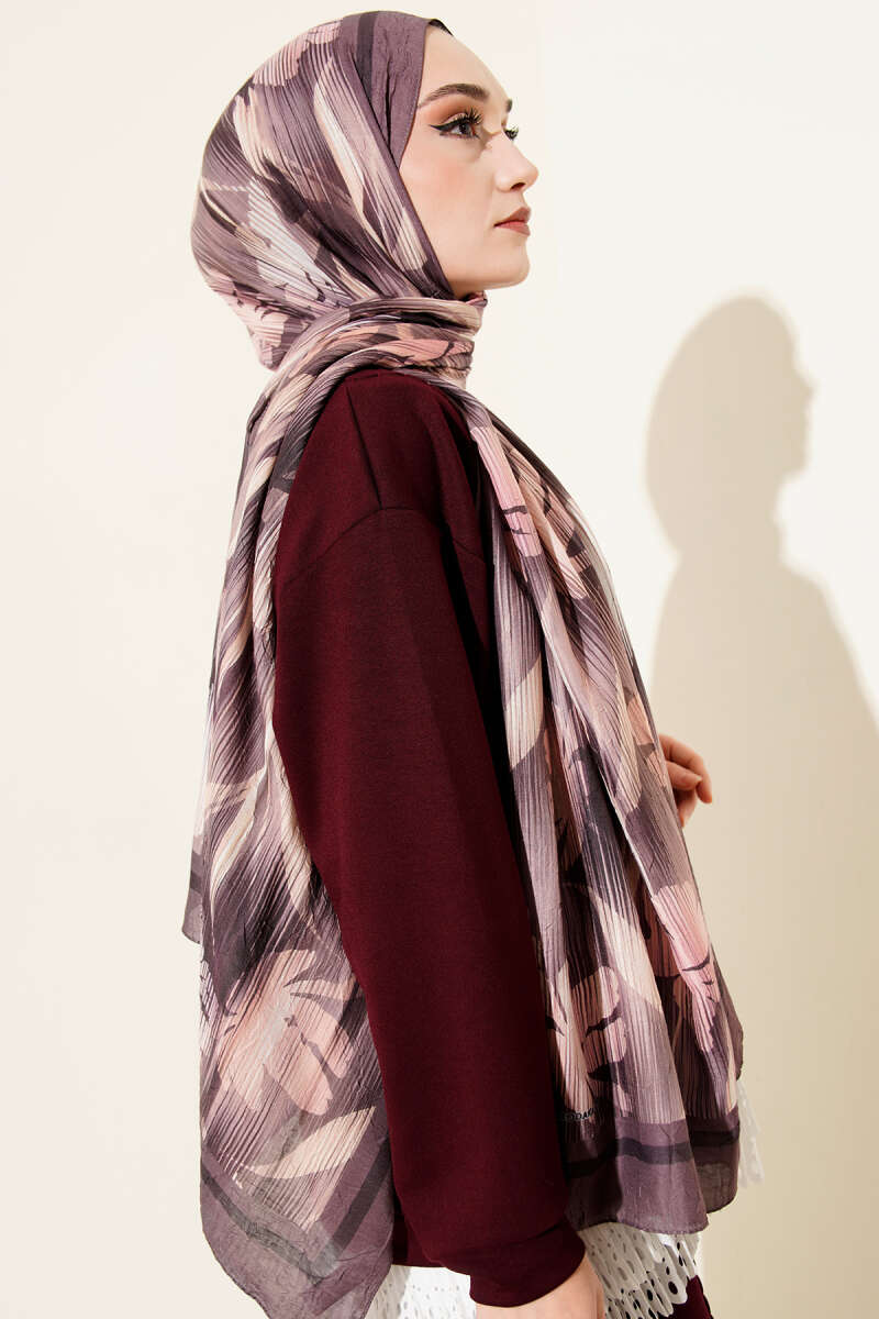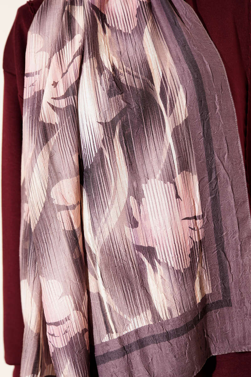 Çiçekli Bambu Kraş Şal Soft Mavi
