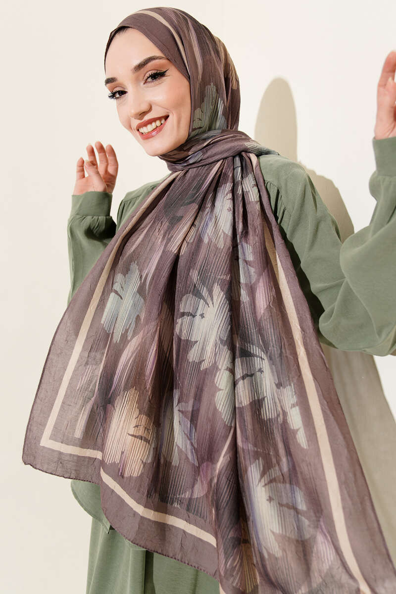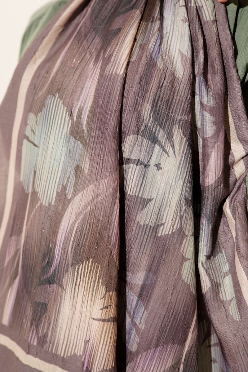 Botanik Desen Demore Şal Kahve