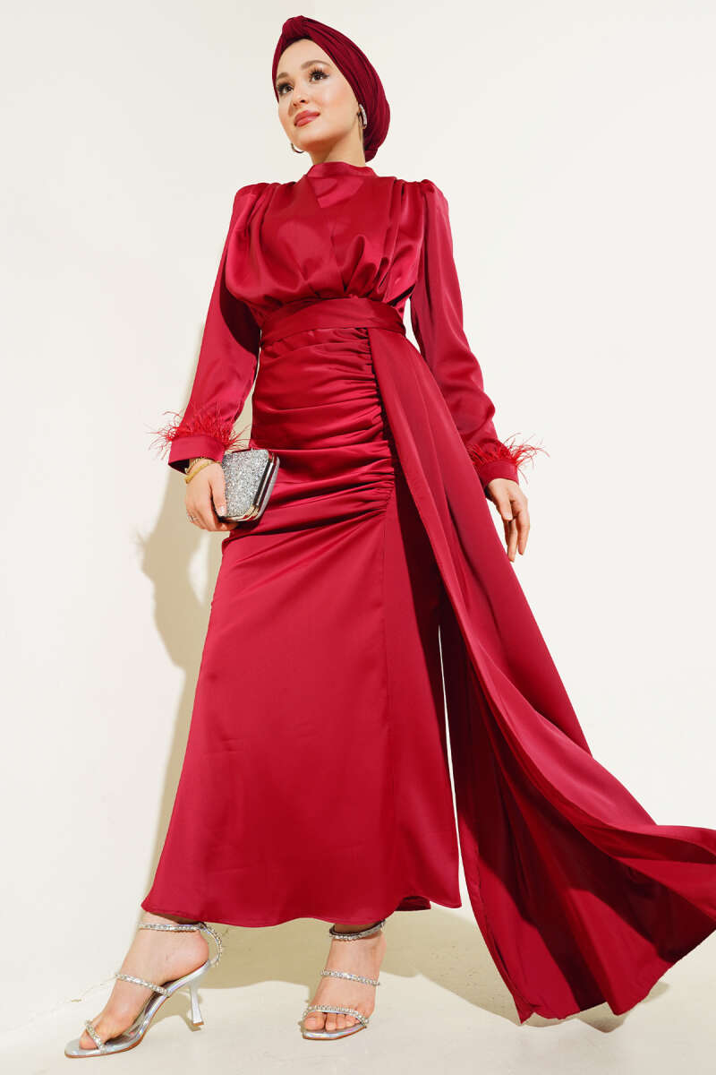 Kol Lastikli Bürümcük Elbise Mürdüm