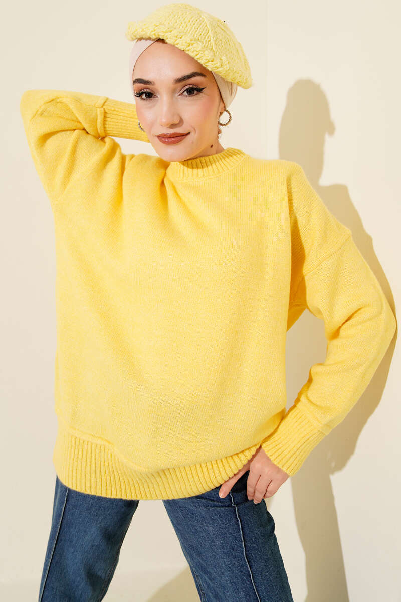Alt Dikişli Yumoş Triko Tunik Ekru