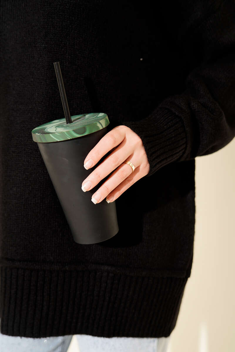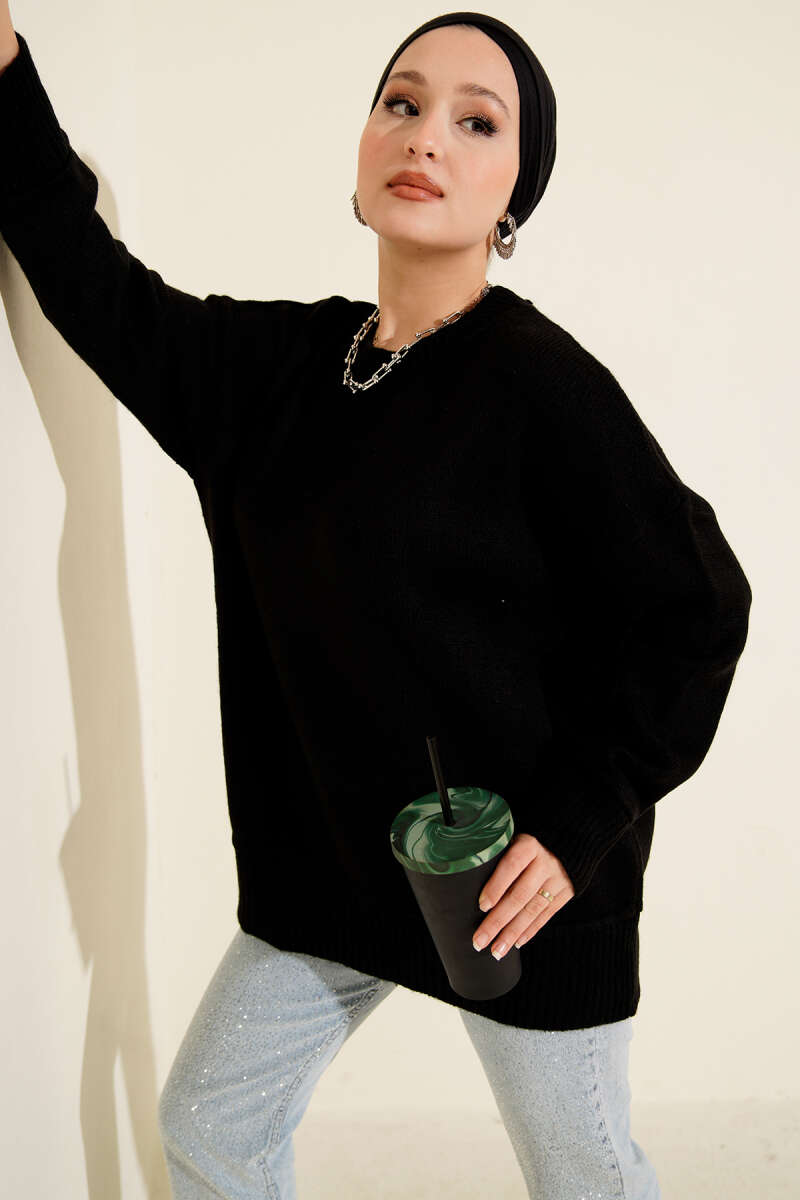 Gömlek Yaka Fularlı Triko Tunik Siyah