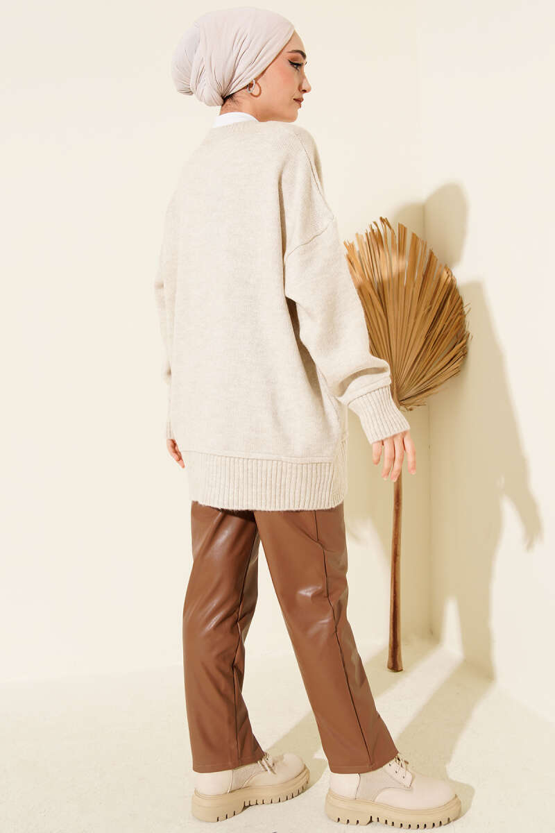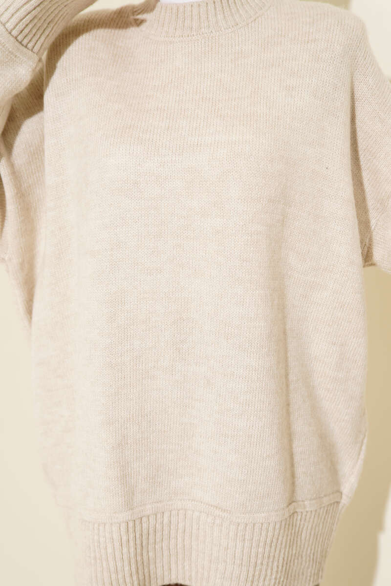 Alt Dikişli Yumoş Triko Tunik Ekru