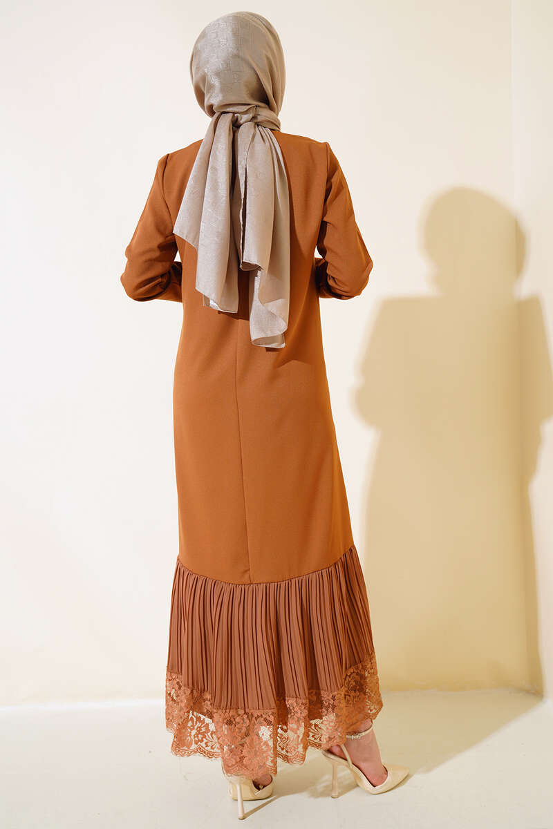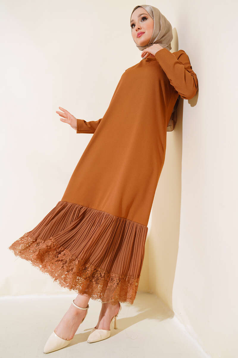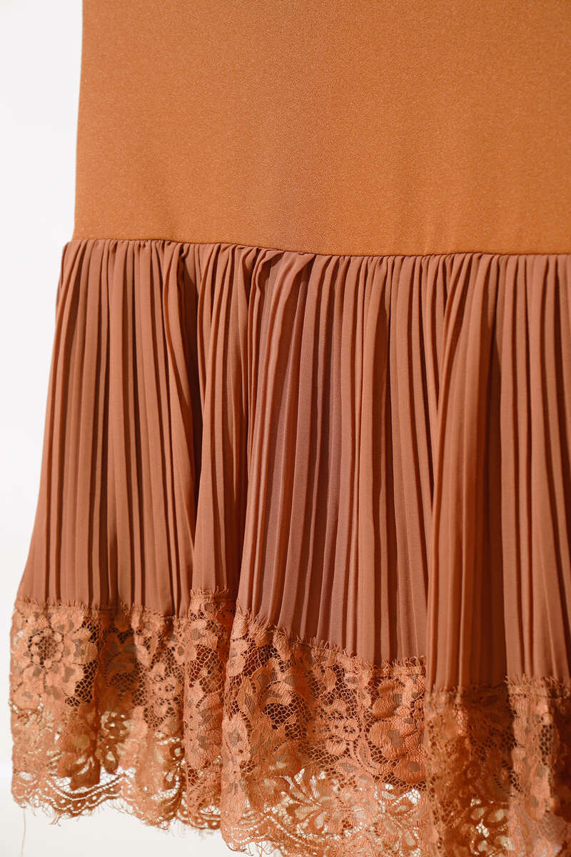 Ajurlu İp Kuşaklı Triko Elbise Kahve