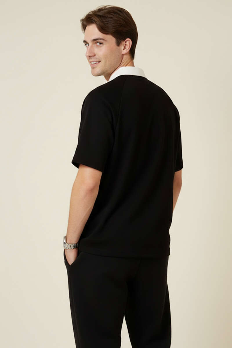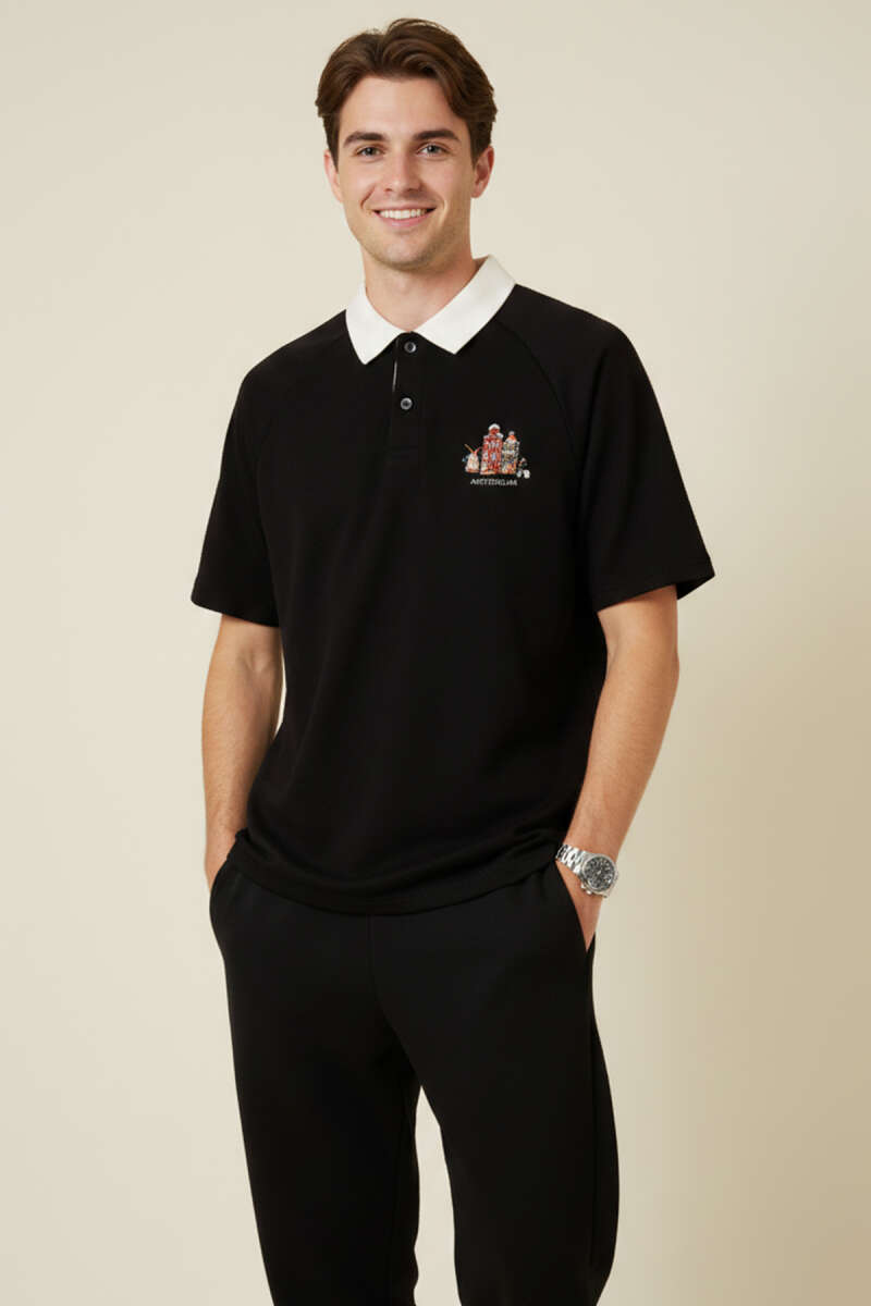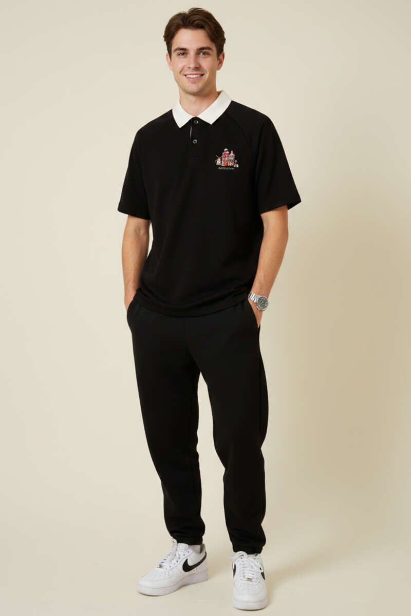 Amsterdam Baskılı Polo Yaka Erkek T-shirt Siyah