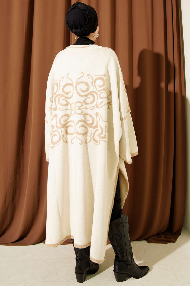 Angora Detaylı Yaka Düğmeli Panço Bej
