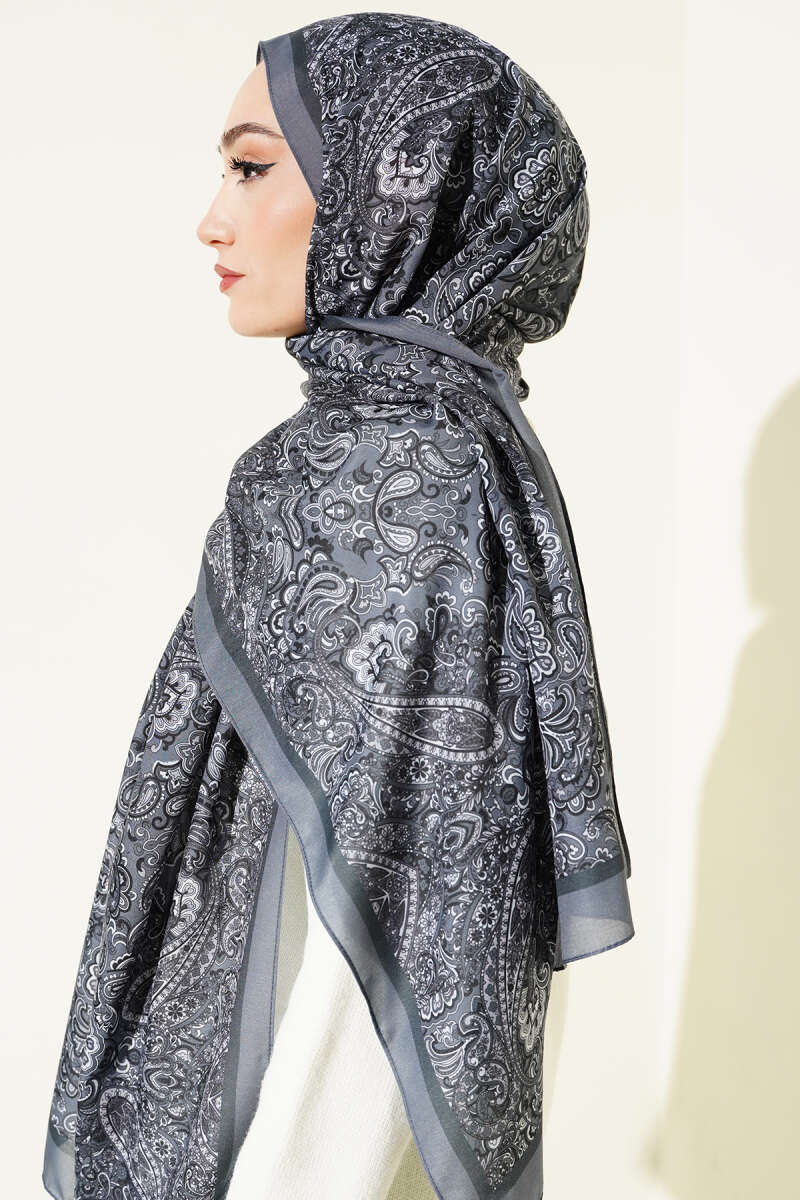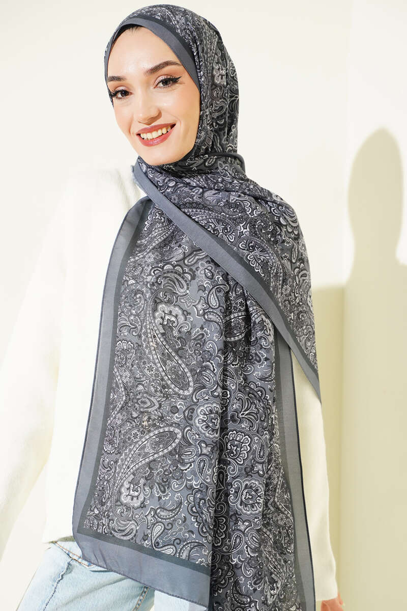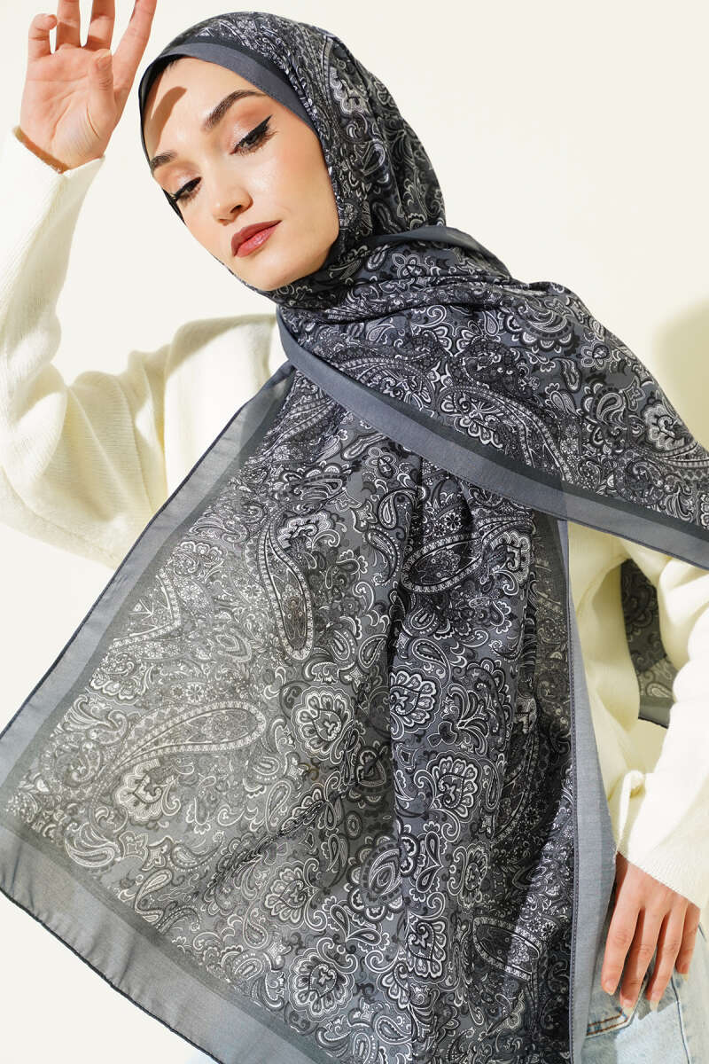 Minik Çiçek Motifli Soft Şal Siyah Vizon