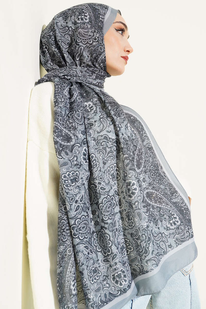 Minik Çiçek Motifli Soft Şal Siyah Vizon