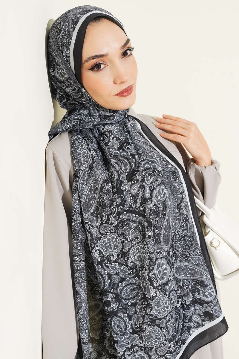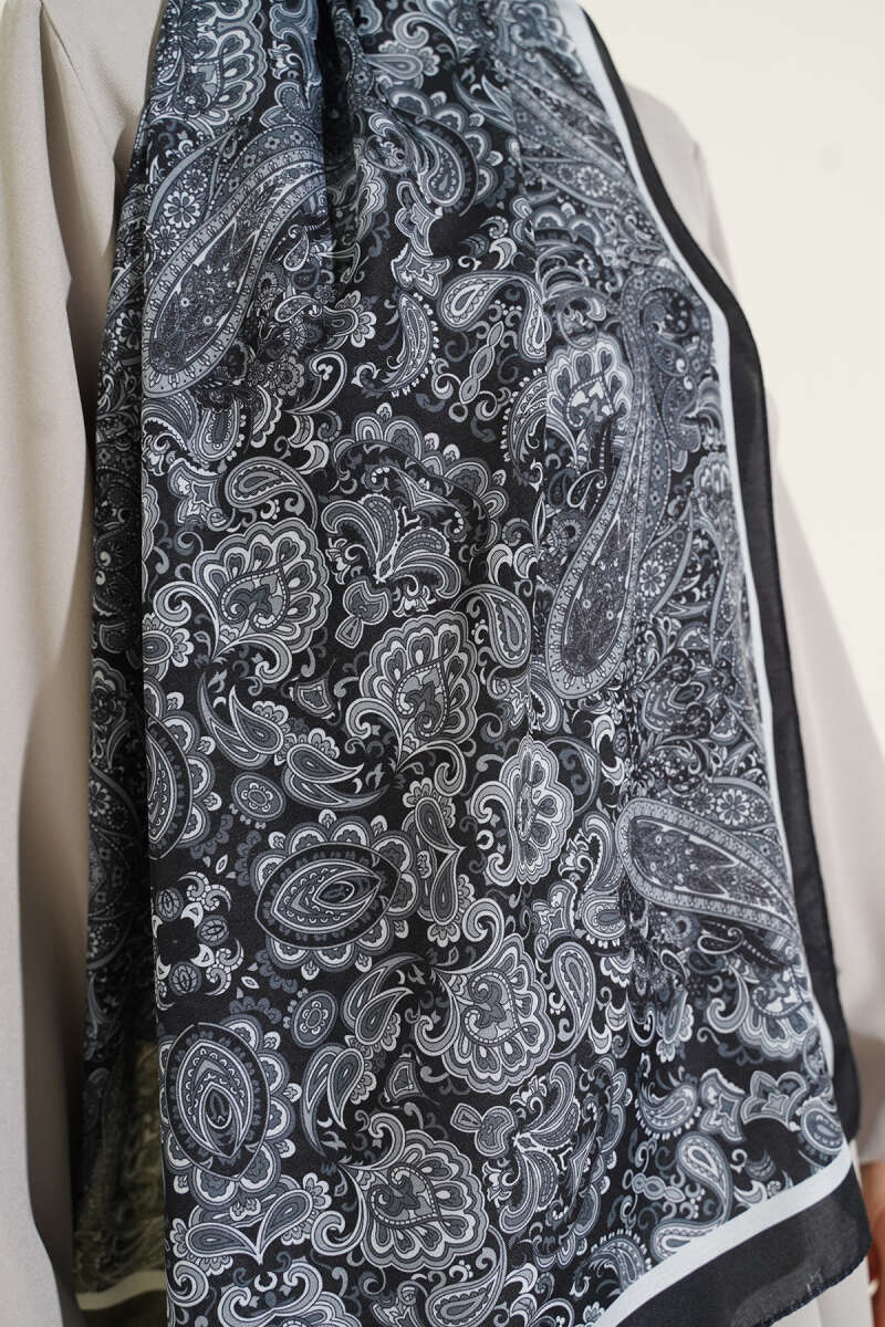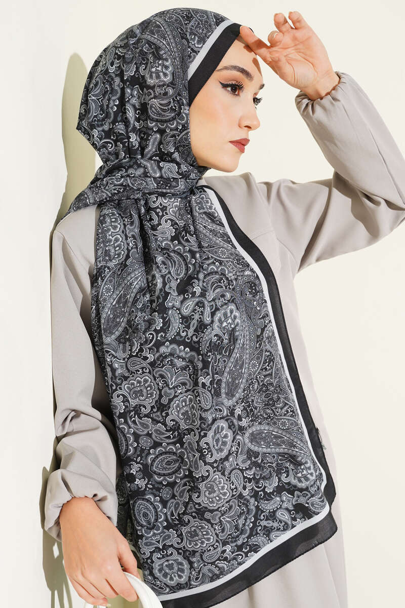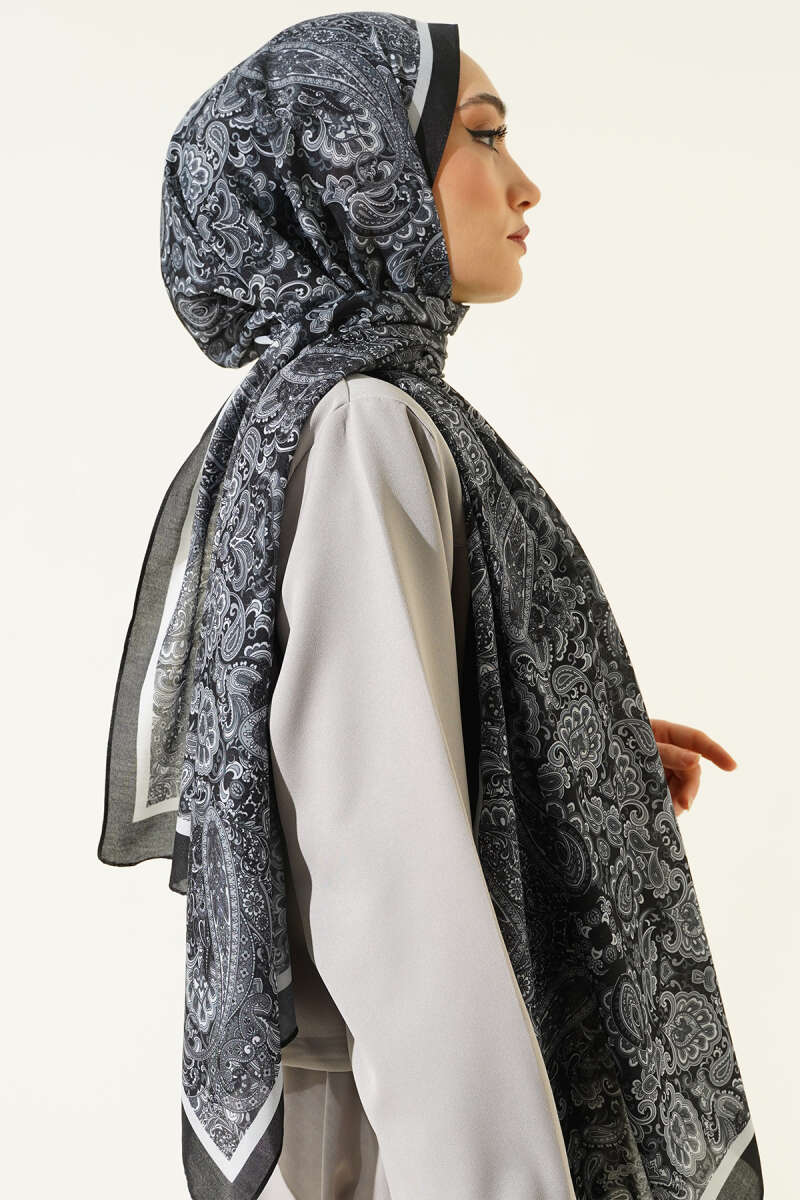 Minik Çiçek Motifli Soft Şal Siyah Vizon
