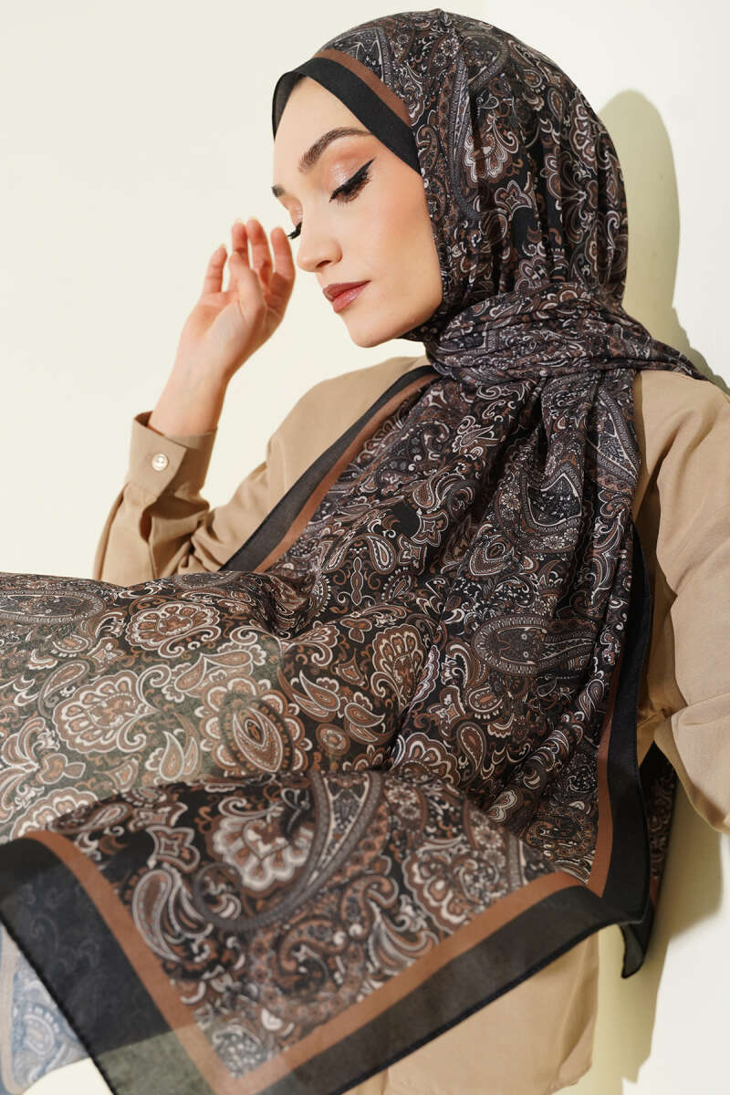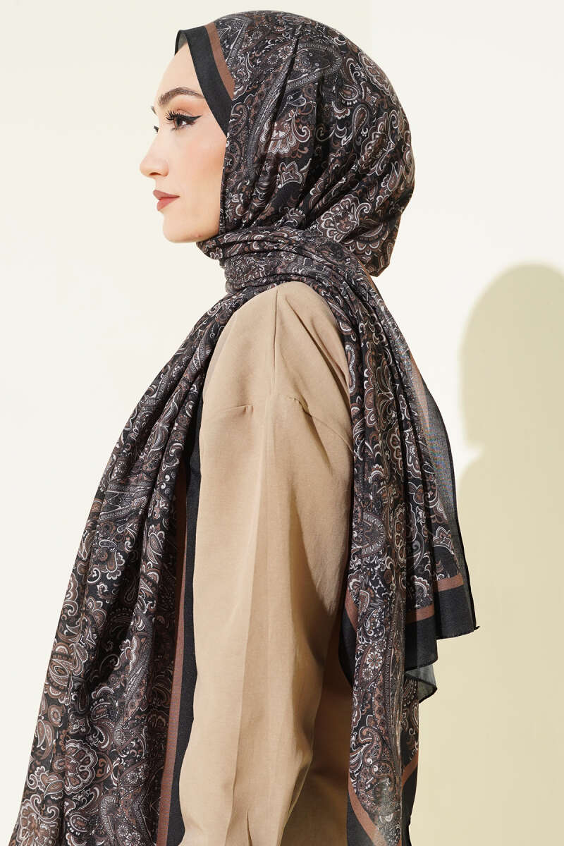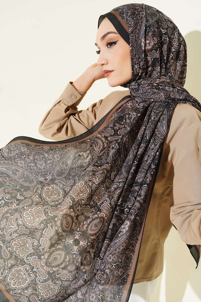 Minik Çiçek Motifli Soft Şal Siyah Vizon