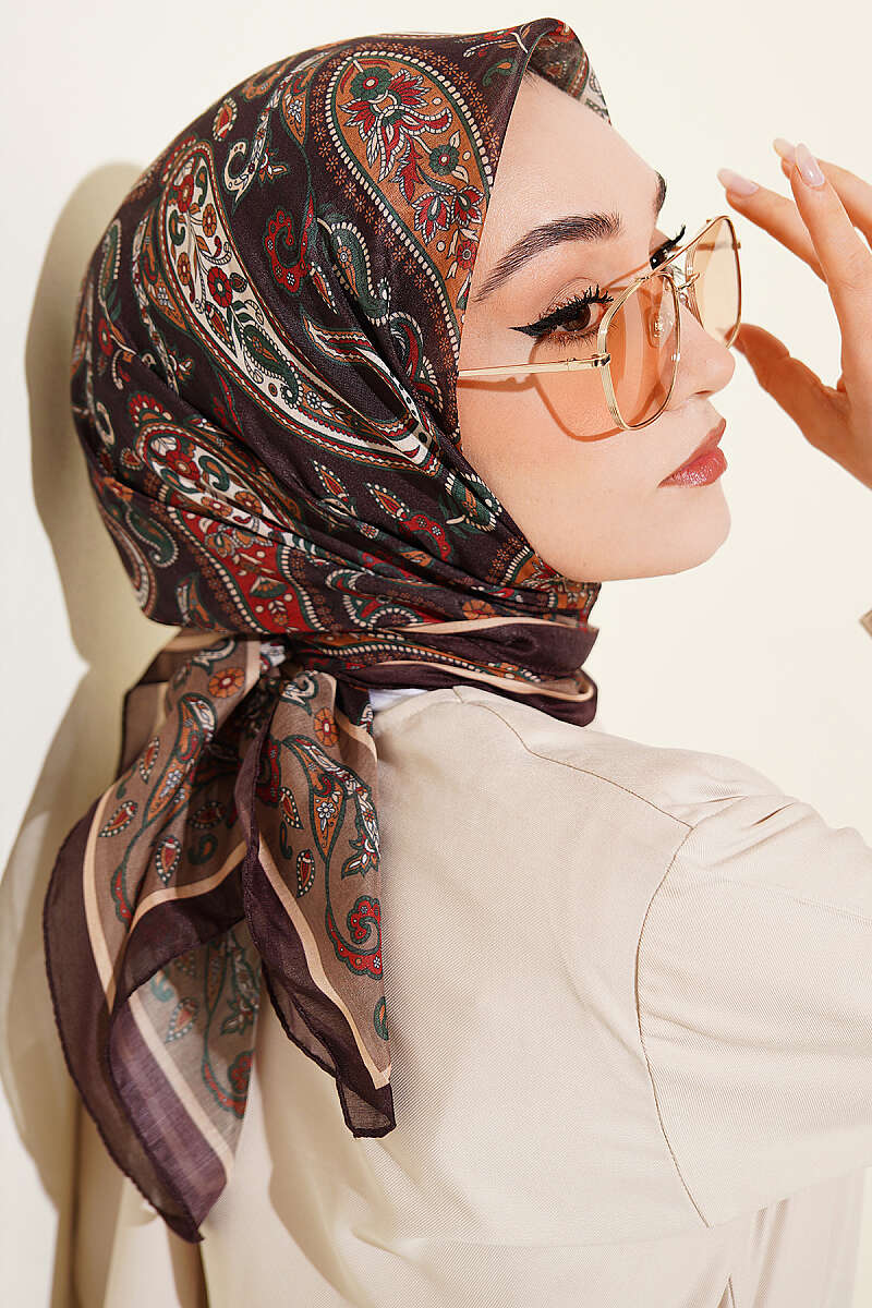 Karışık Desen Bambu Kraş Ayda Eşarp Kahve