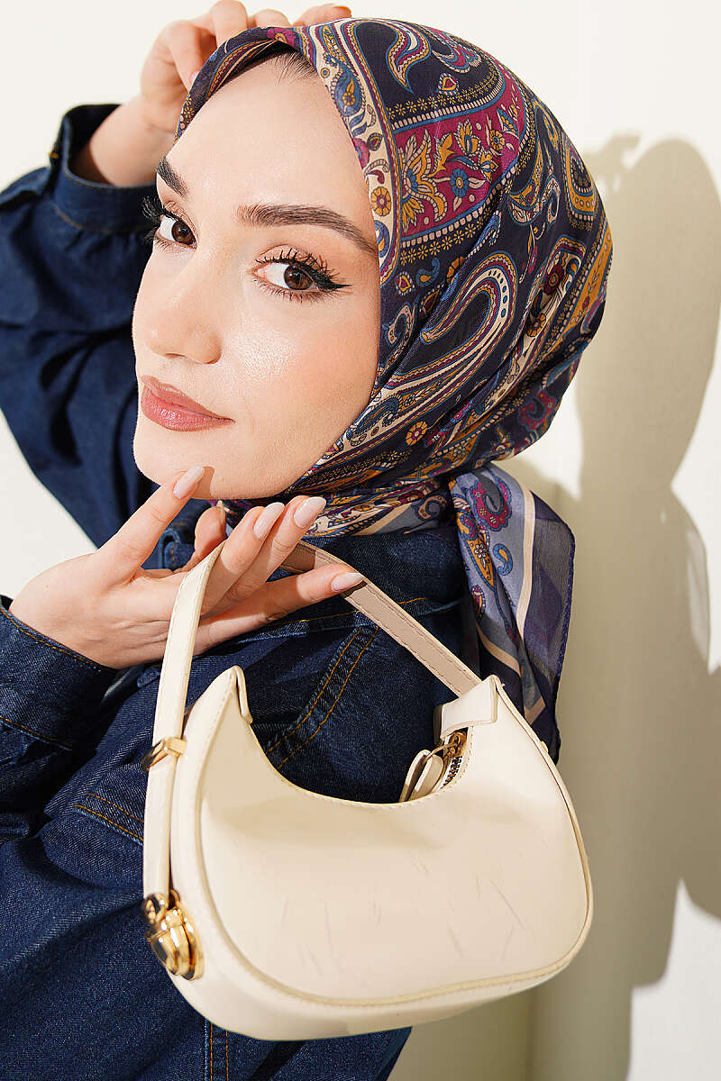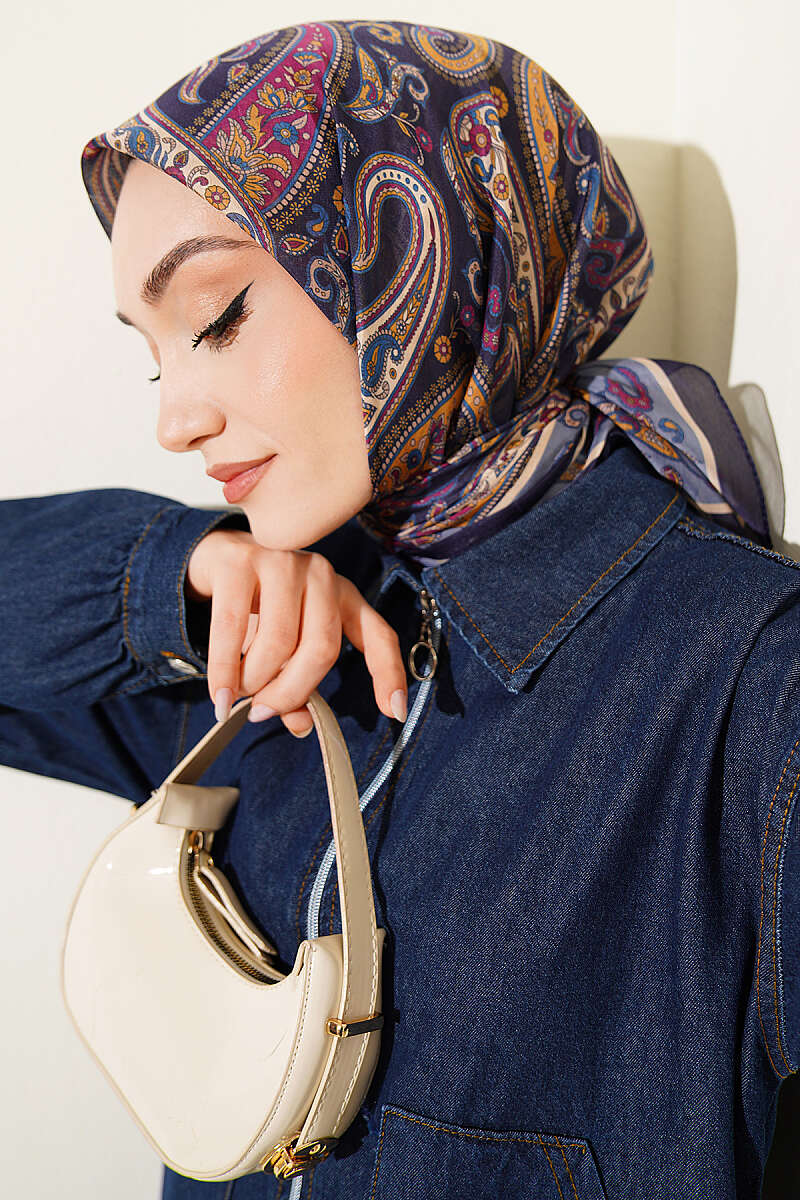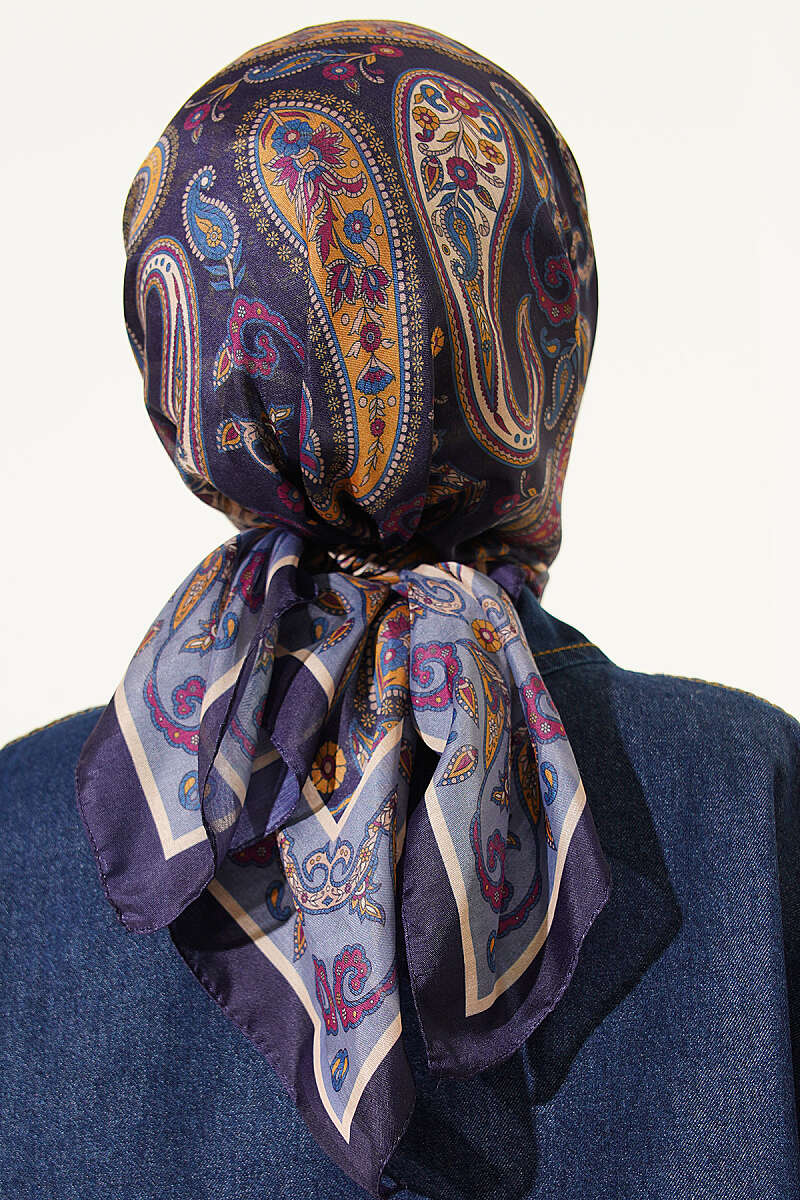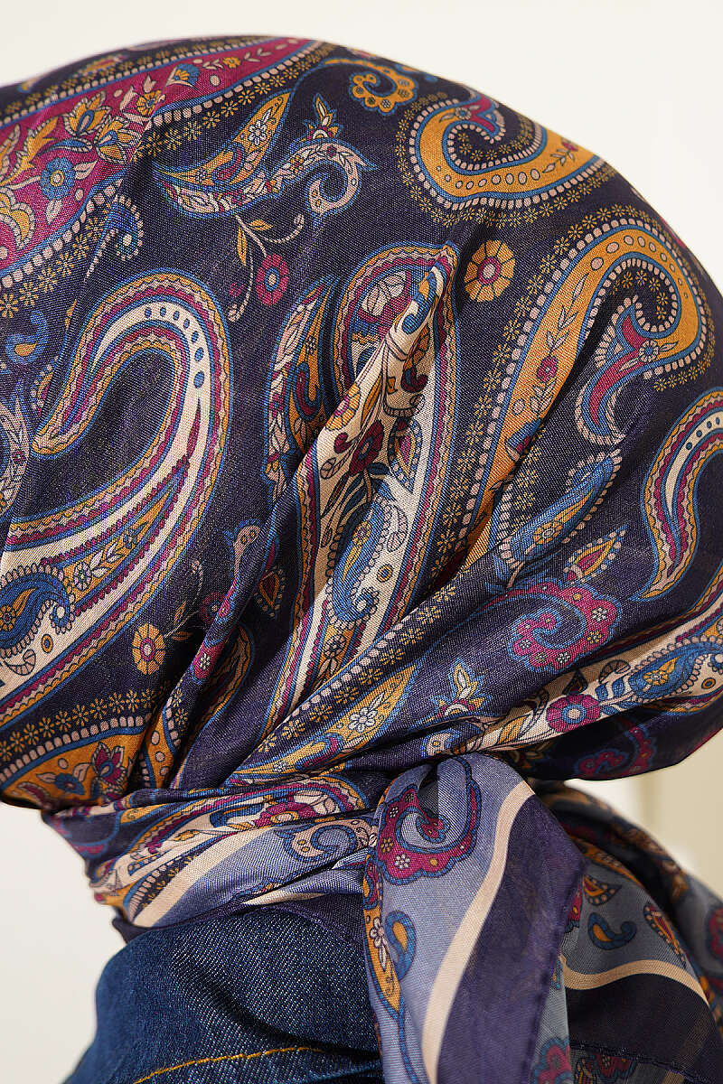 Antik Paisley Desen Eşarp Lacivert Mavi