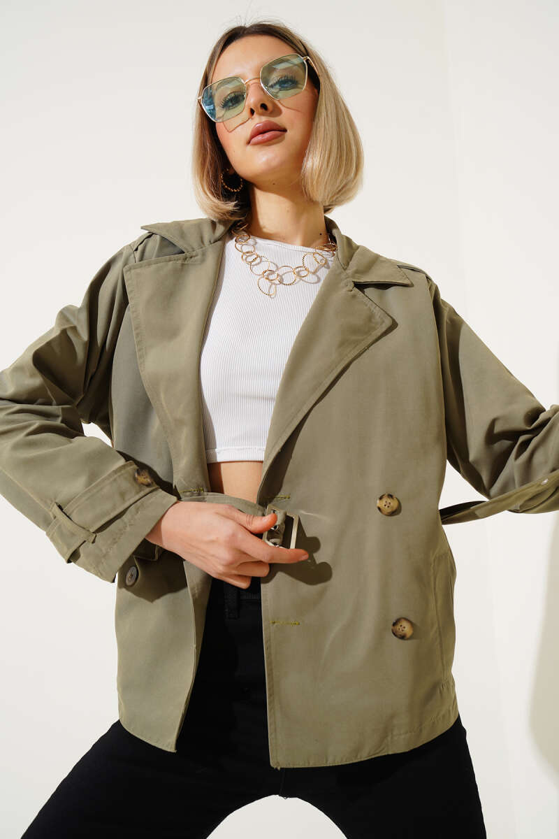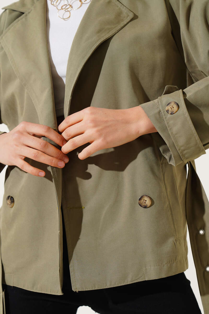 Metal Düğmeli Etekli Scuba İkili Takım Haki