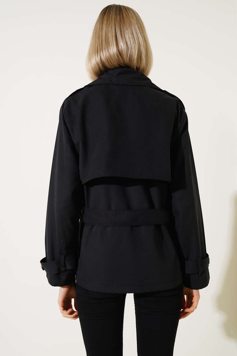 Fermuarlı Kapüşonlu Kısa Şişme Mont Siyah