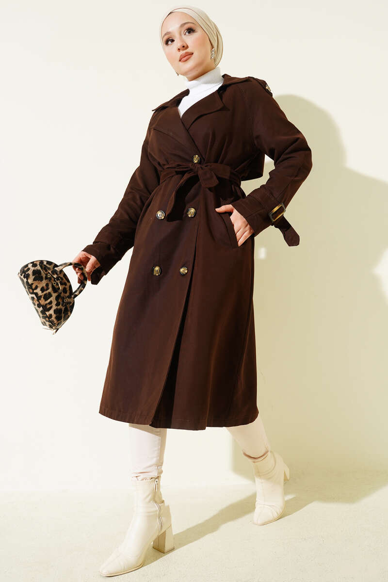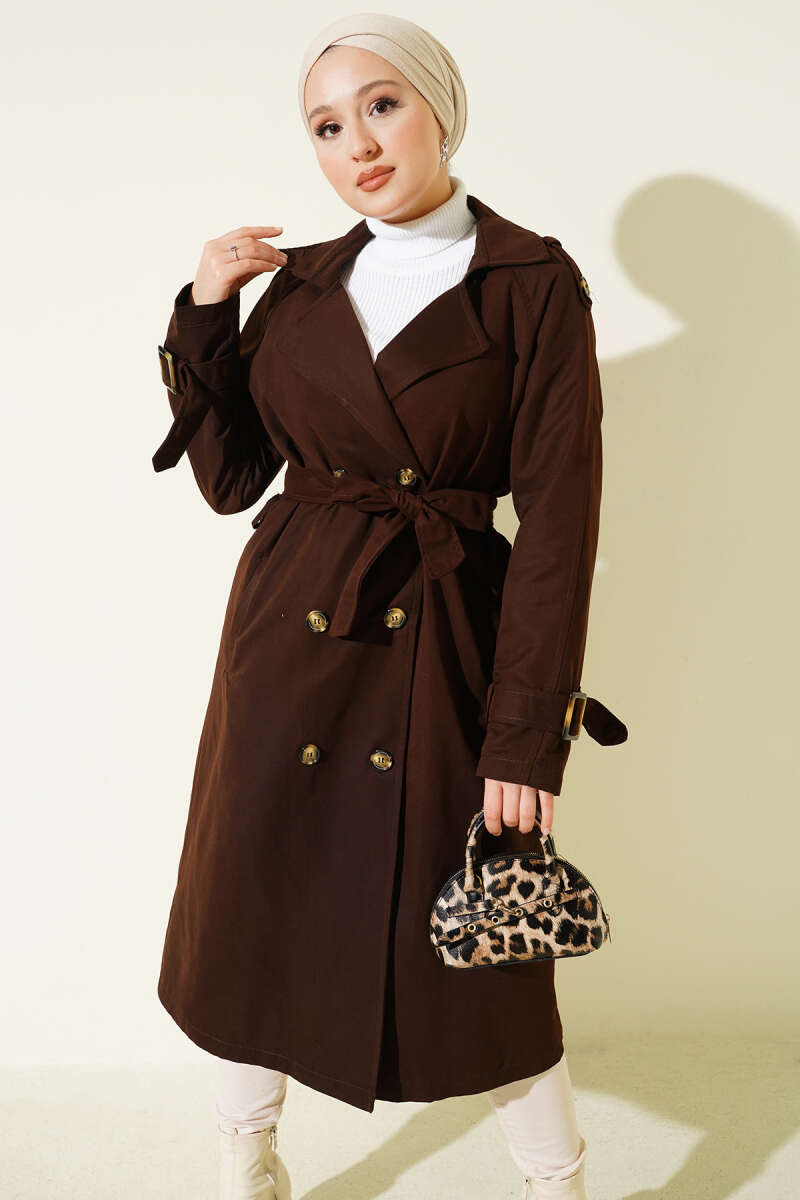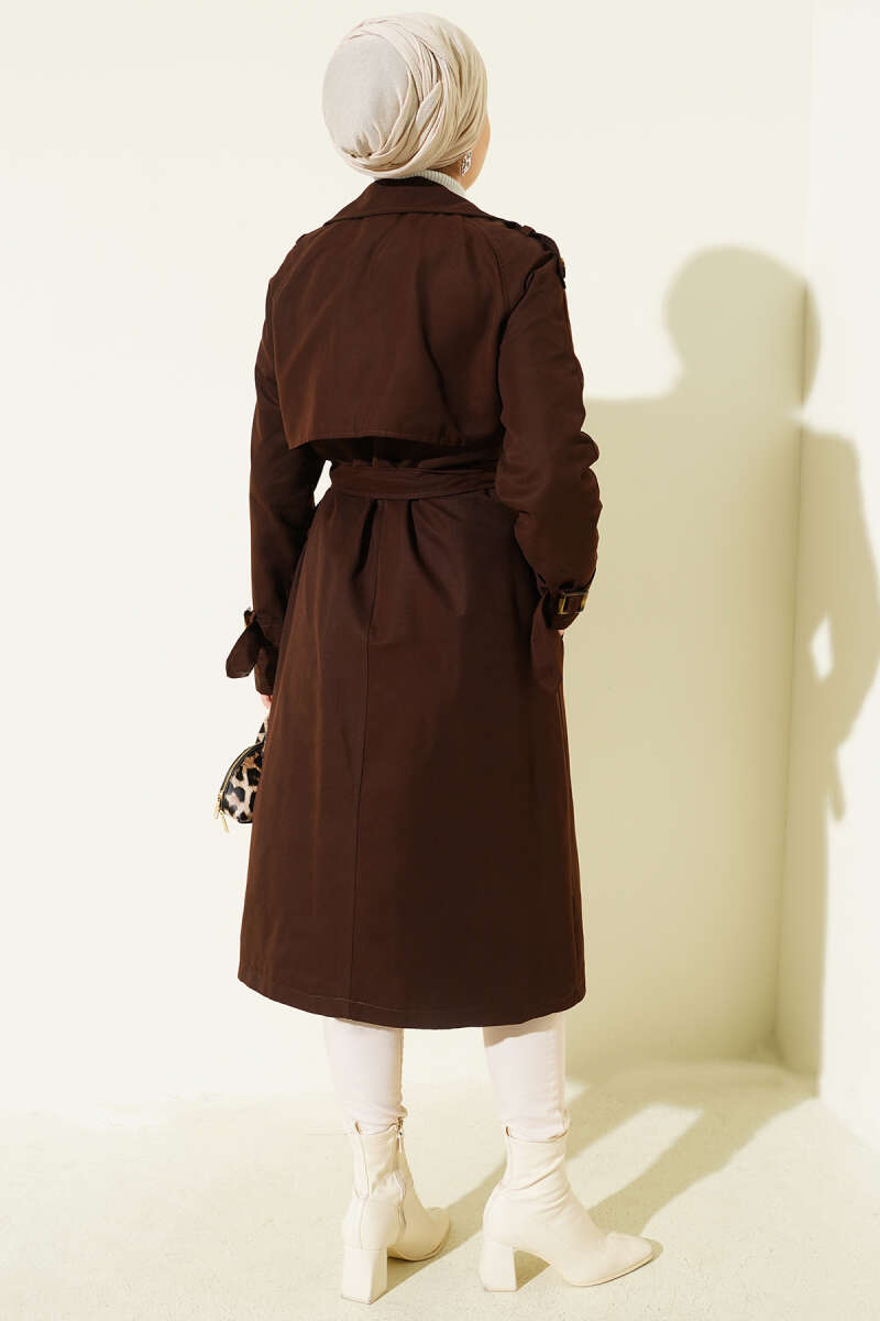 Pelerin Detaylı Apoletli Trençkot Kahve