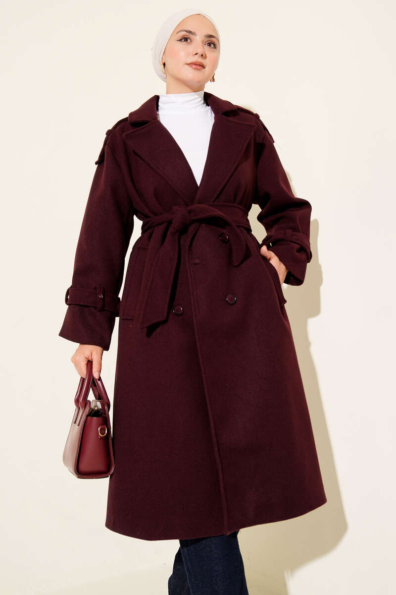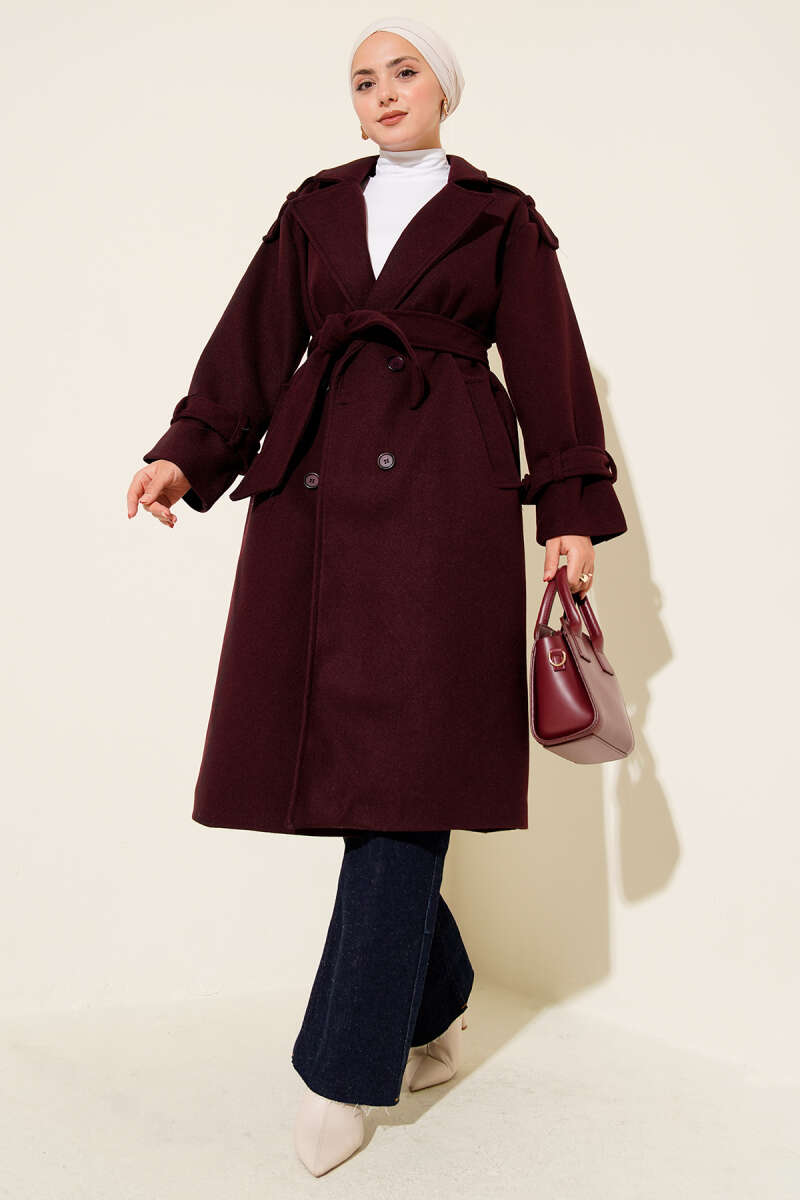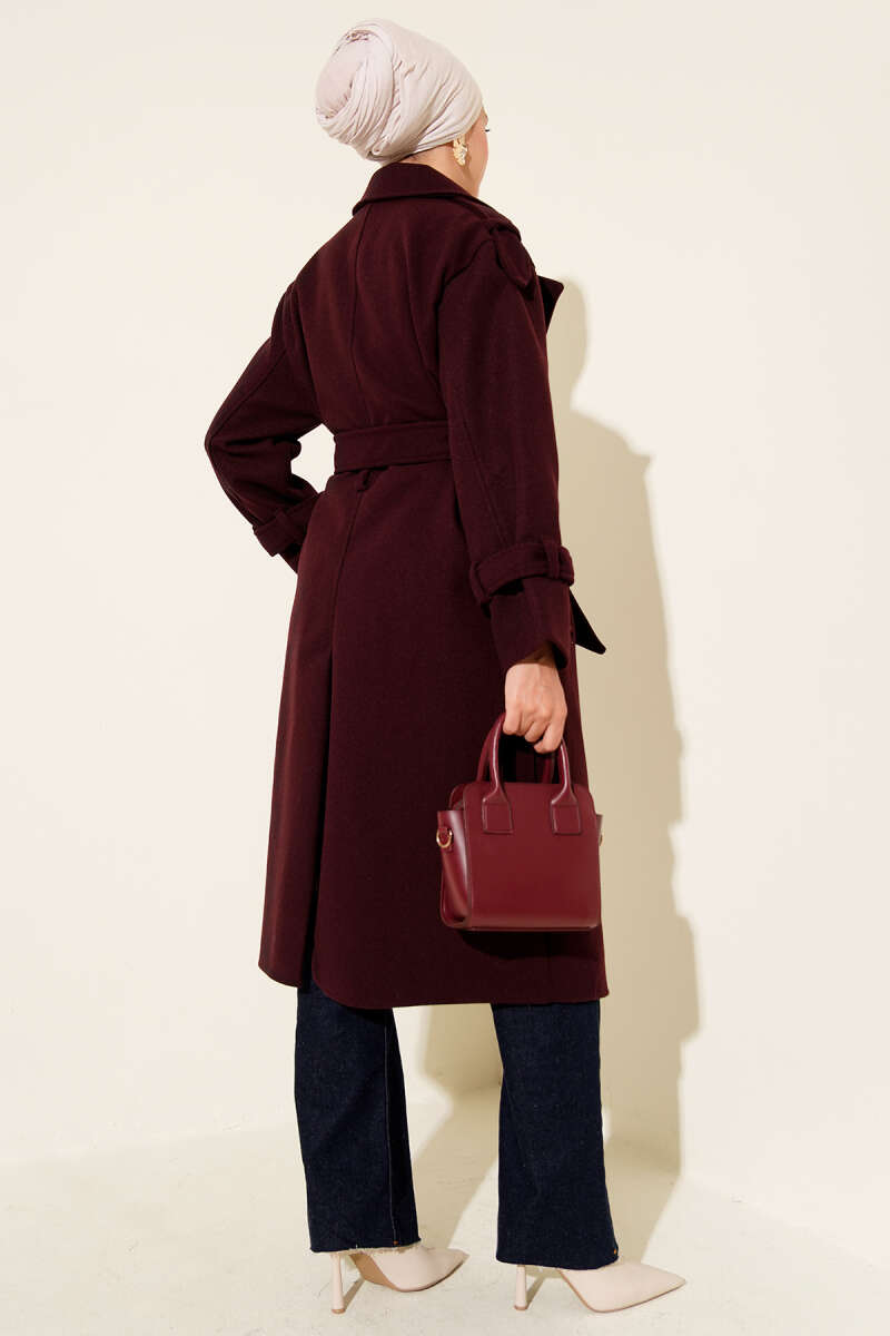 Kol Ribanalı Gold Düğmeli Kaban Kahve