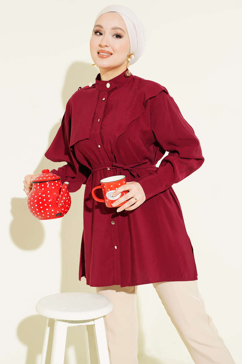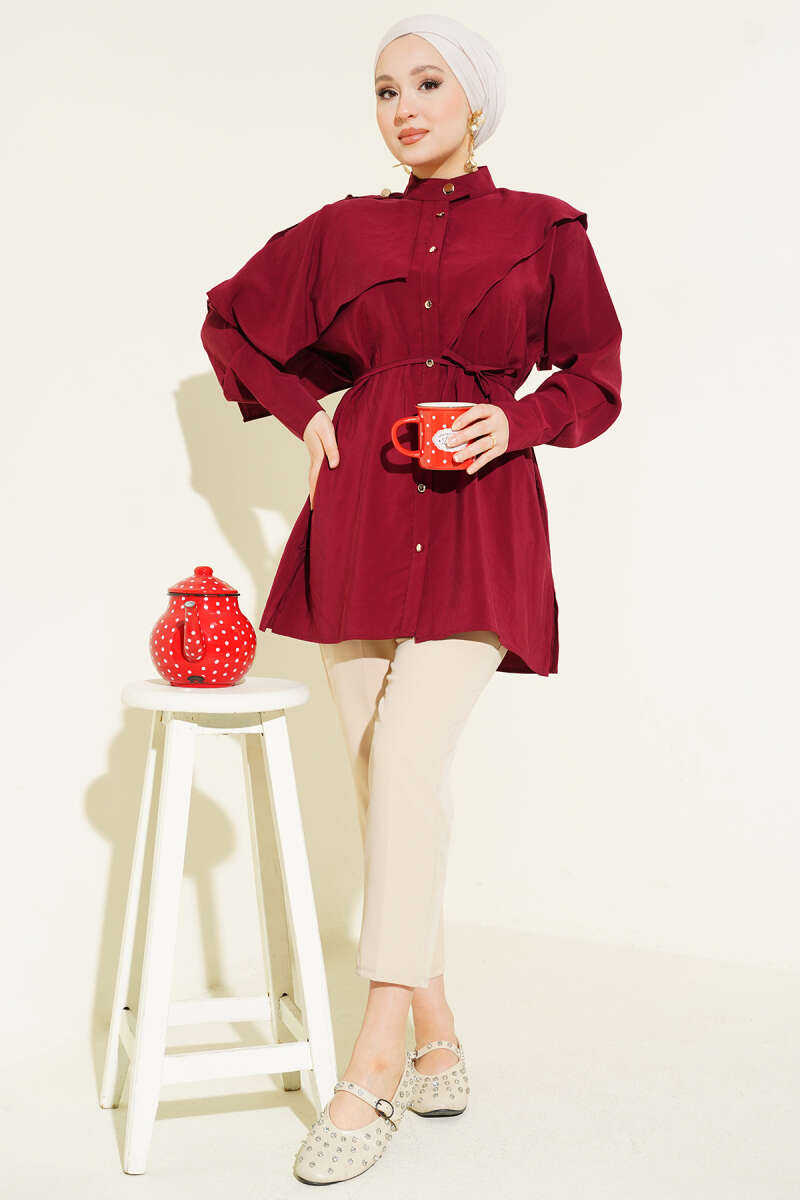 Yan İp Bağlamalı Basic Gömlek Magenta