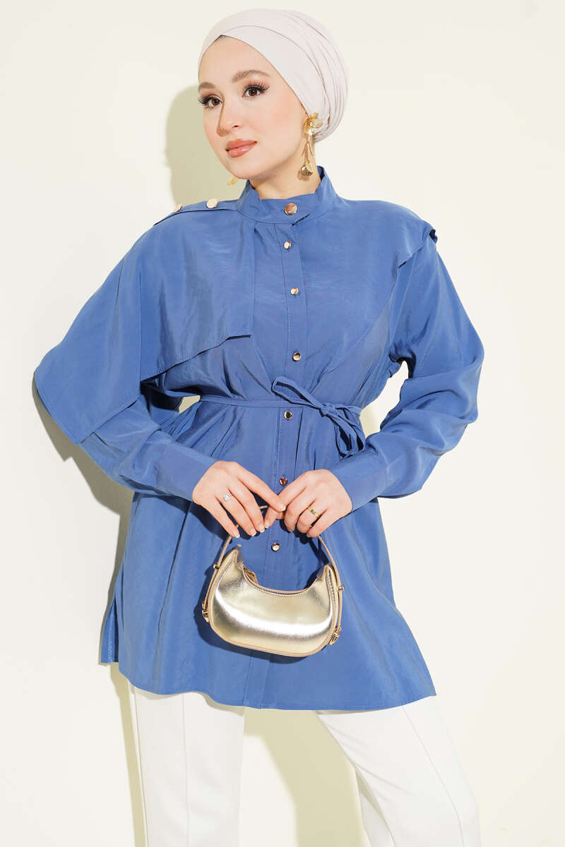 Yan İp Bağlamalı Basic Gömlek Kahve