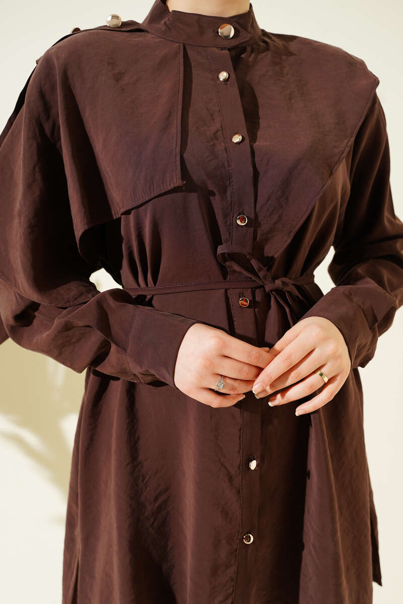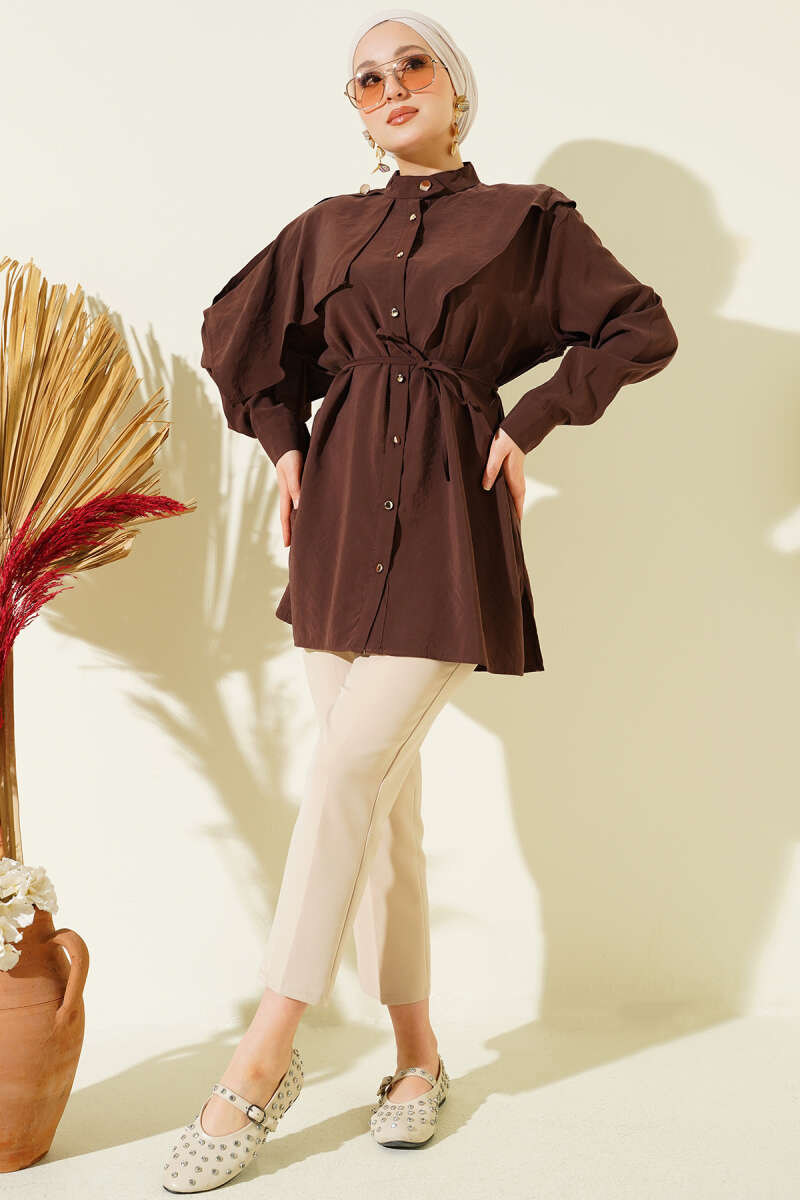 Apoletli Pelerinli Modal Gömlek Kahve