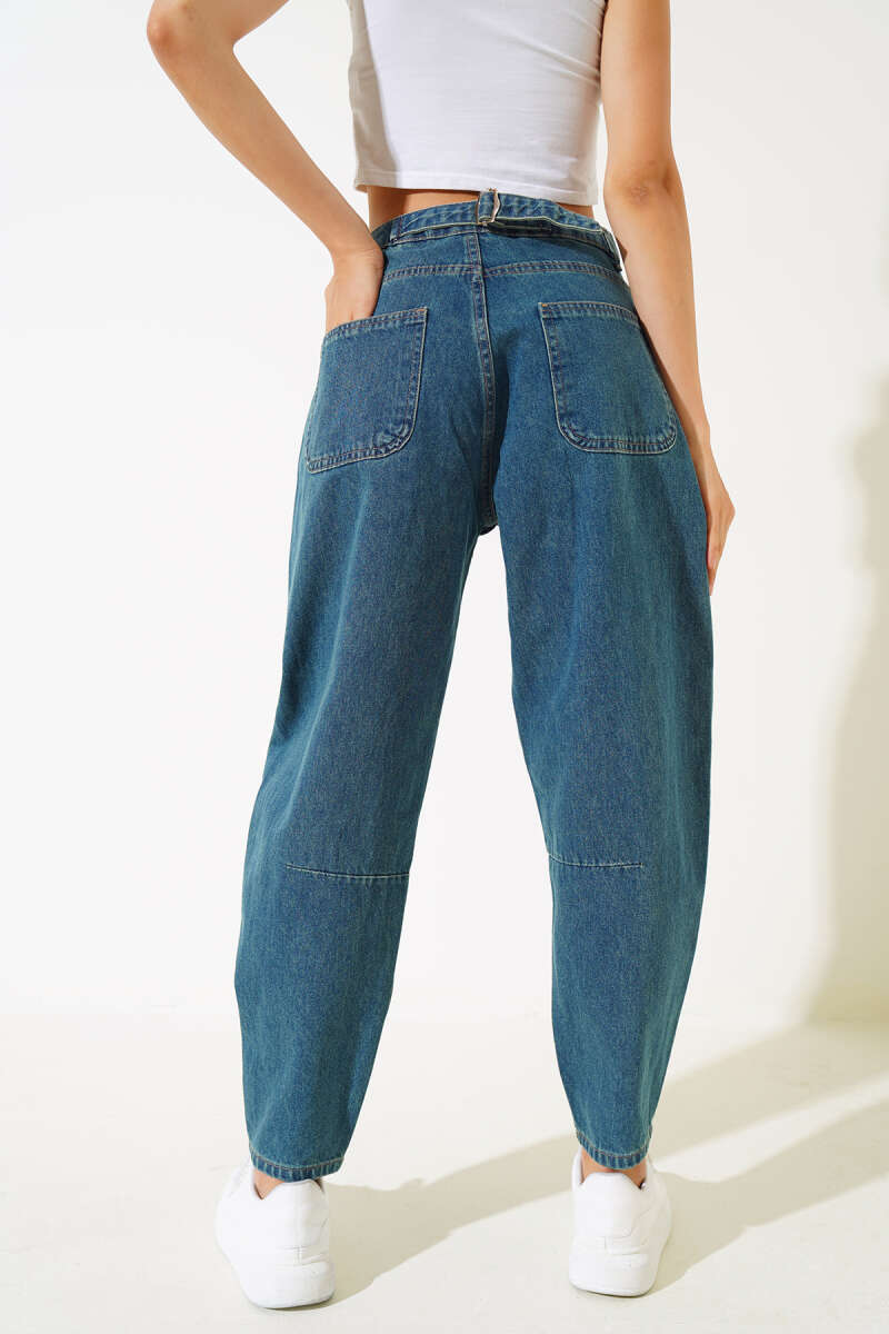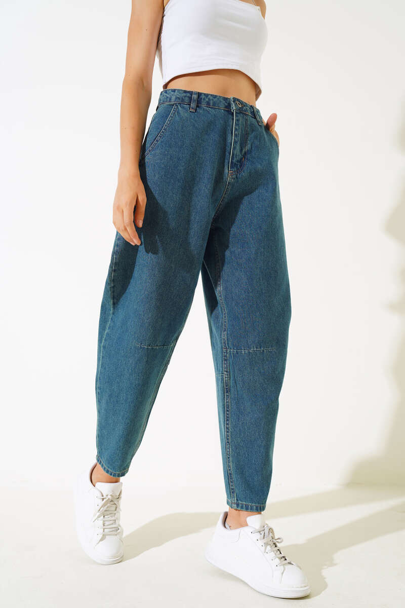Arka Tokalı Diz Pensli Kot Pantolon Yeşil Tint