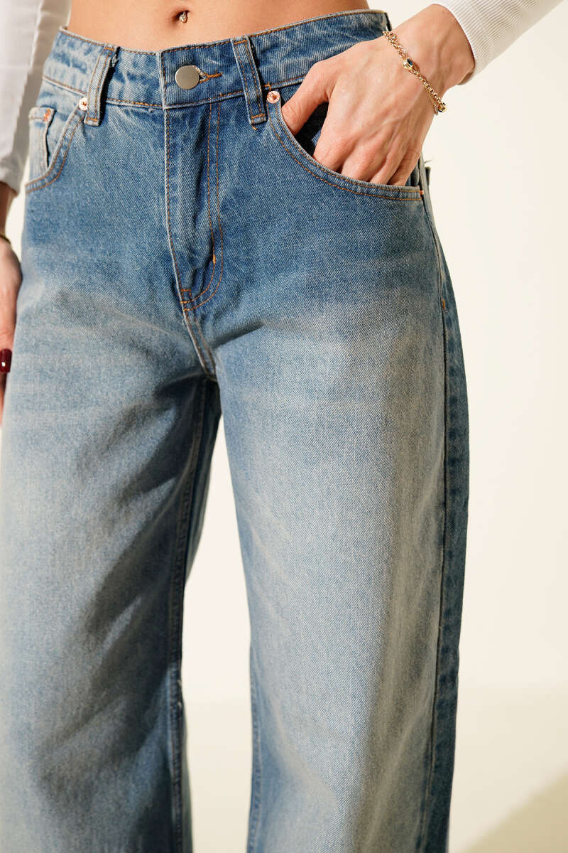 Kesik Paça Palazzo Salaş Kot Pantolon Kahve Tint