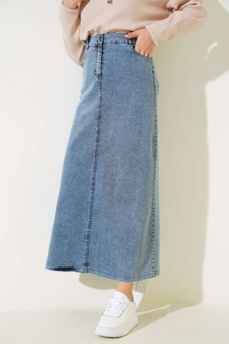 Beli Lastikli Kloş Scuba Etek Lacivert