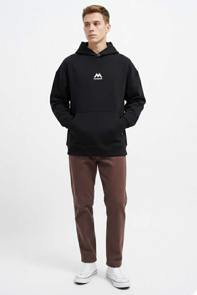 Arkası Baskılı Erkek Sweatshirt Siyah