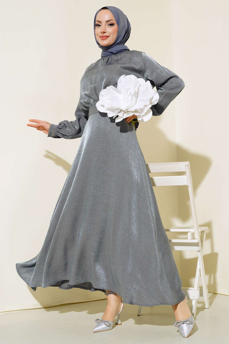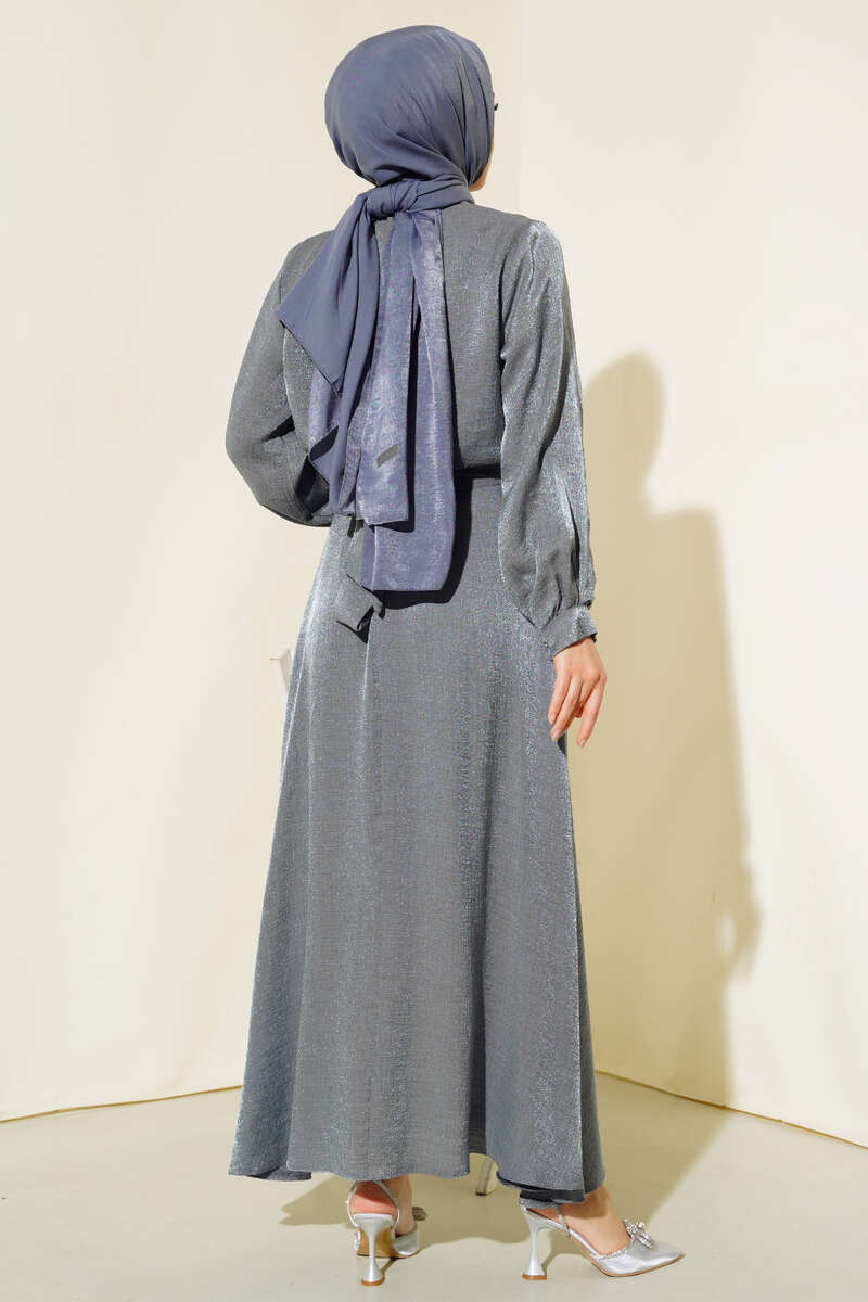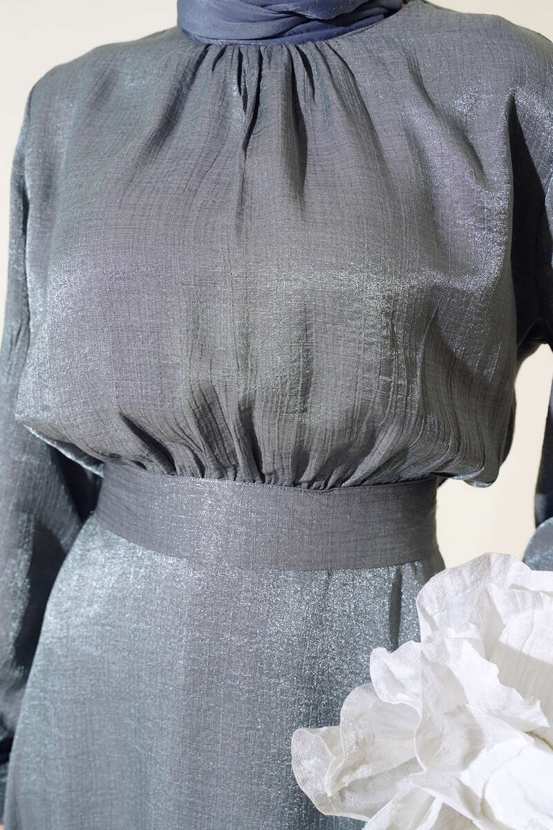 Arkası Kurdele Bağlamalı Etekli Takım Gri