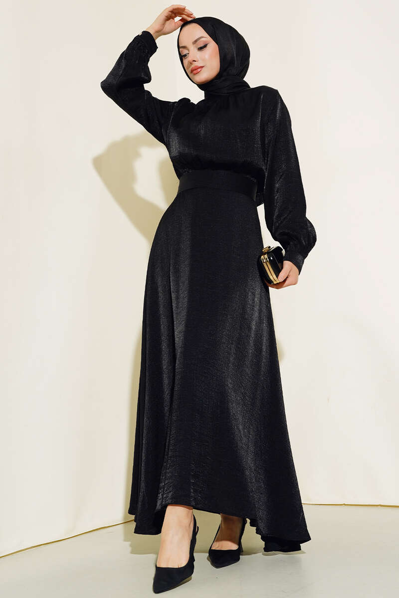 Arkası Kurdele Bağlamalı Etekli Takım Siyah