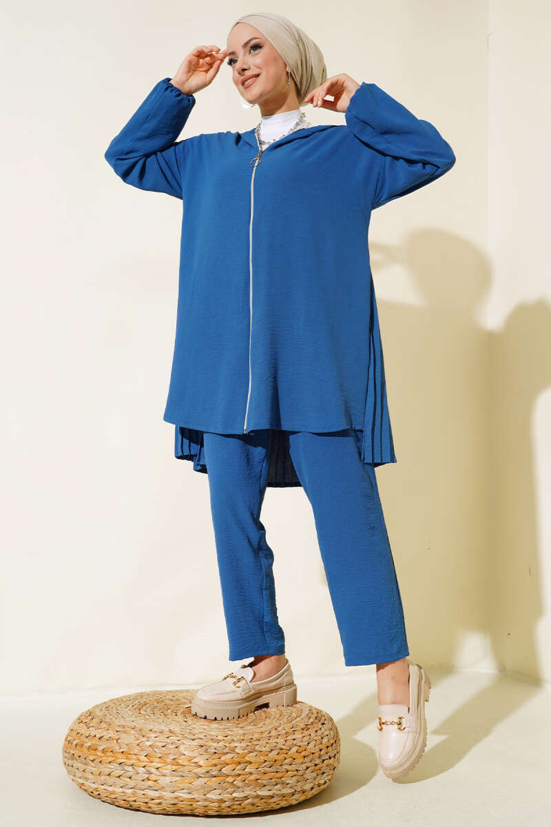Loyşa Büzgü Detaylı Basic İkili Takım Bebe Mavi