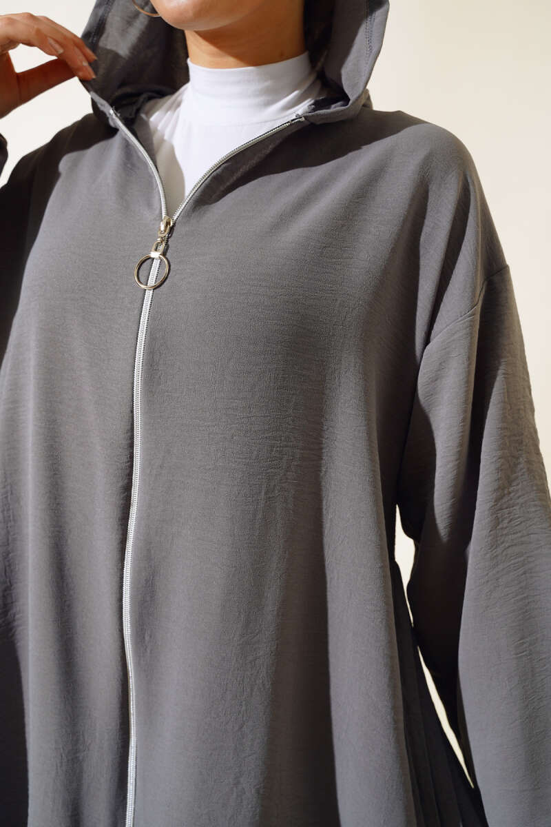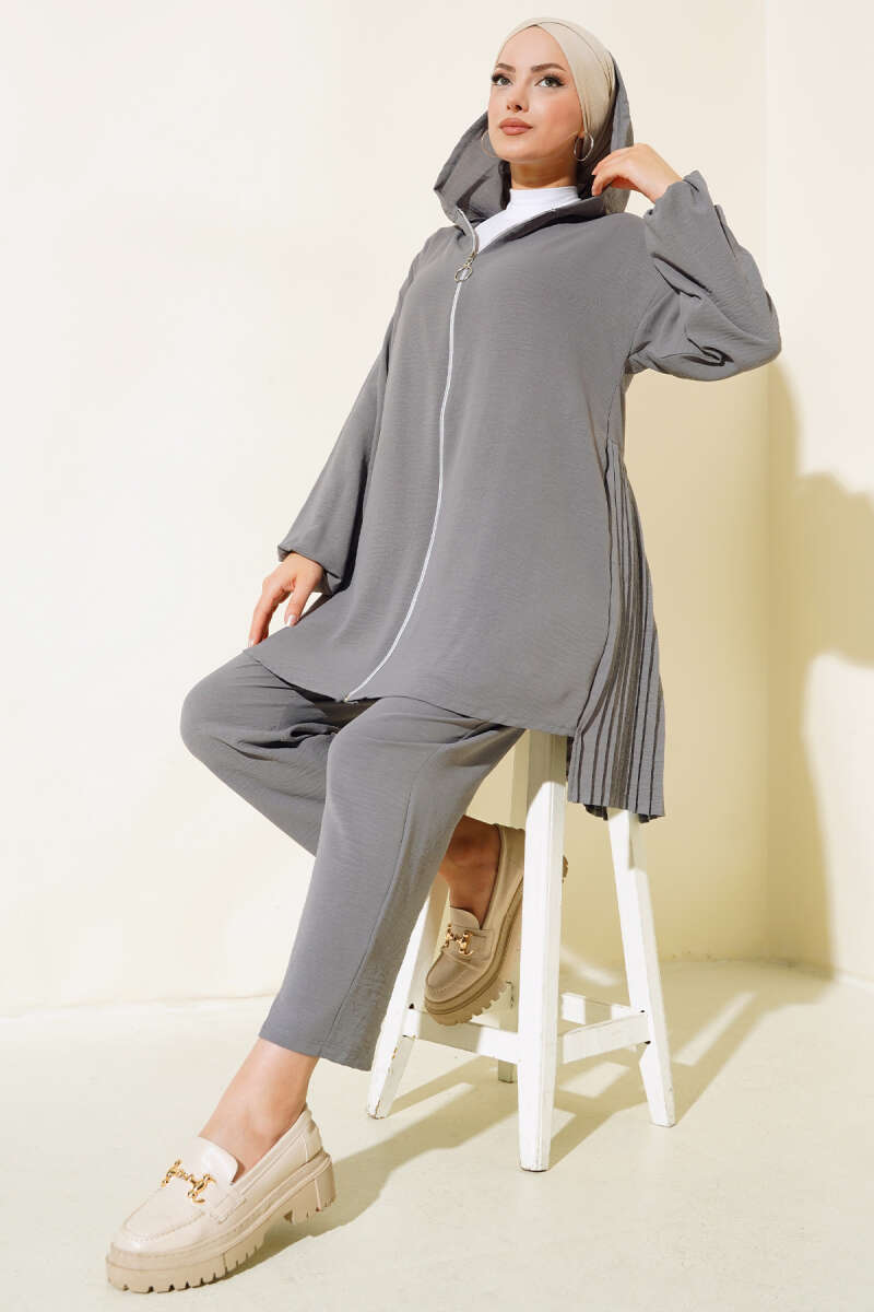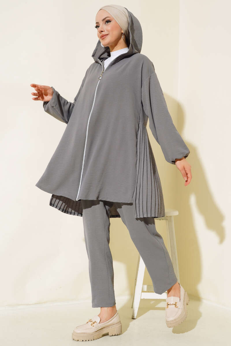 Arkası Pileli Ayrobin İkili Takım Kayrak Grisi