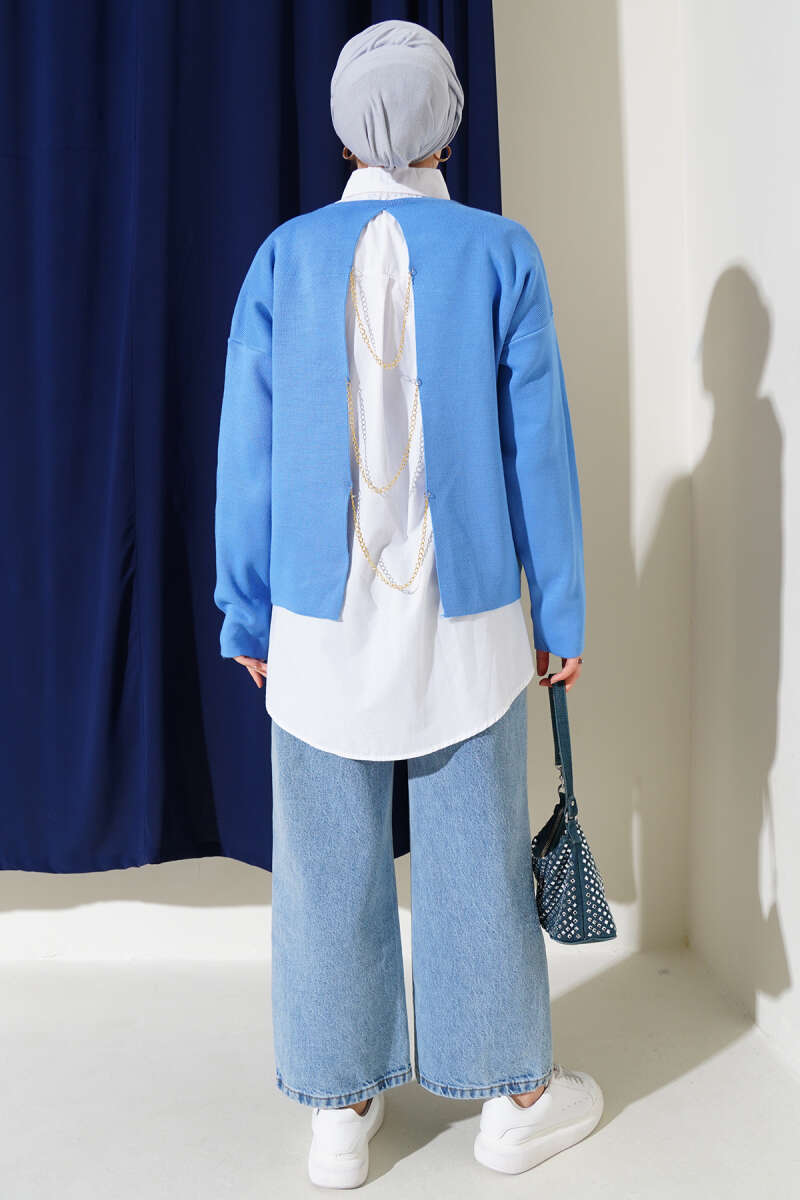 Bisiklet Yaka Sakal Detaylı Kazak Beyaz