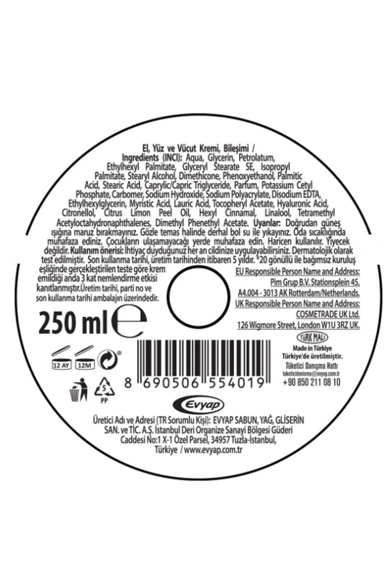 Arko Nem Besleyici Hyaluronik Asit Bakım Kremi 250 ml