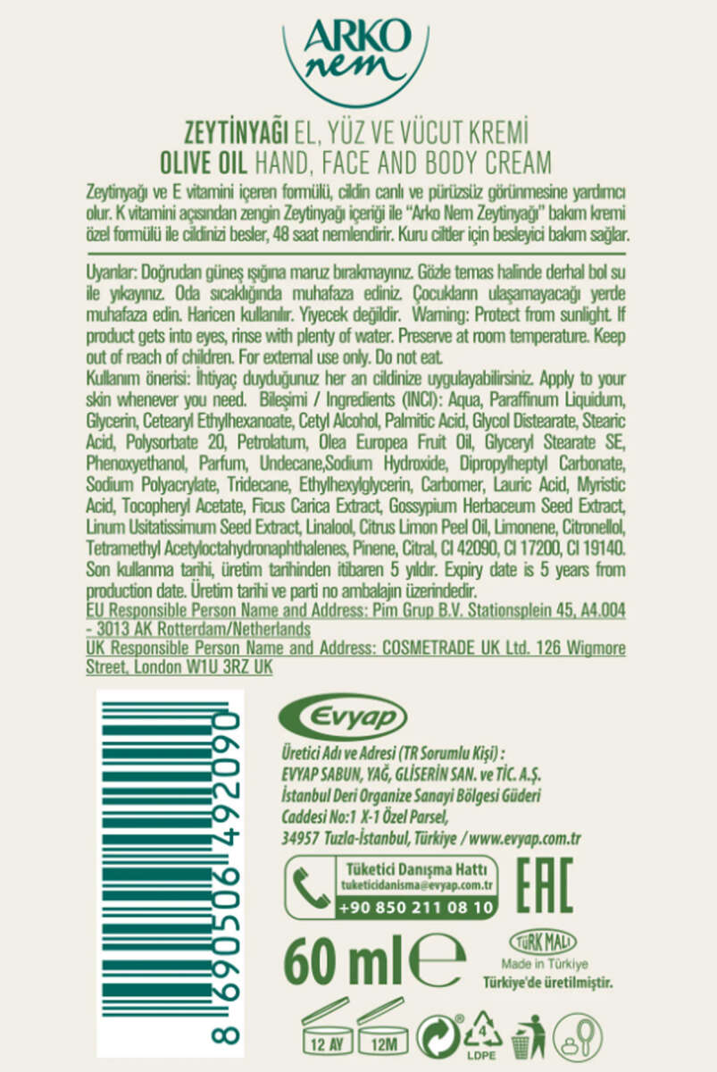 Arko Nem Zeytinyağı Yoğun Bakım Kremi 60 ml